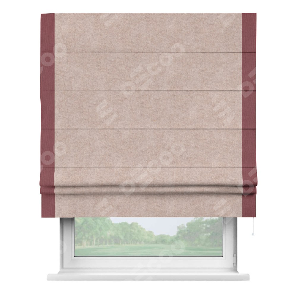 Римская штора «Кортин» для проема, канвас пудровый, с кантом Стрим Дуо