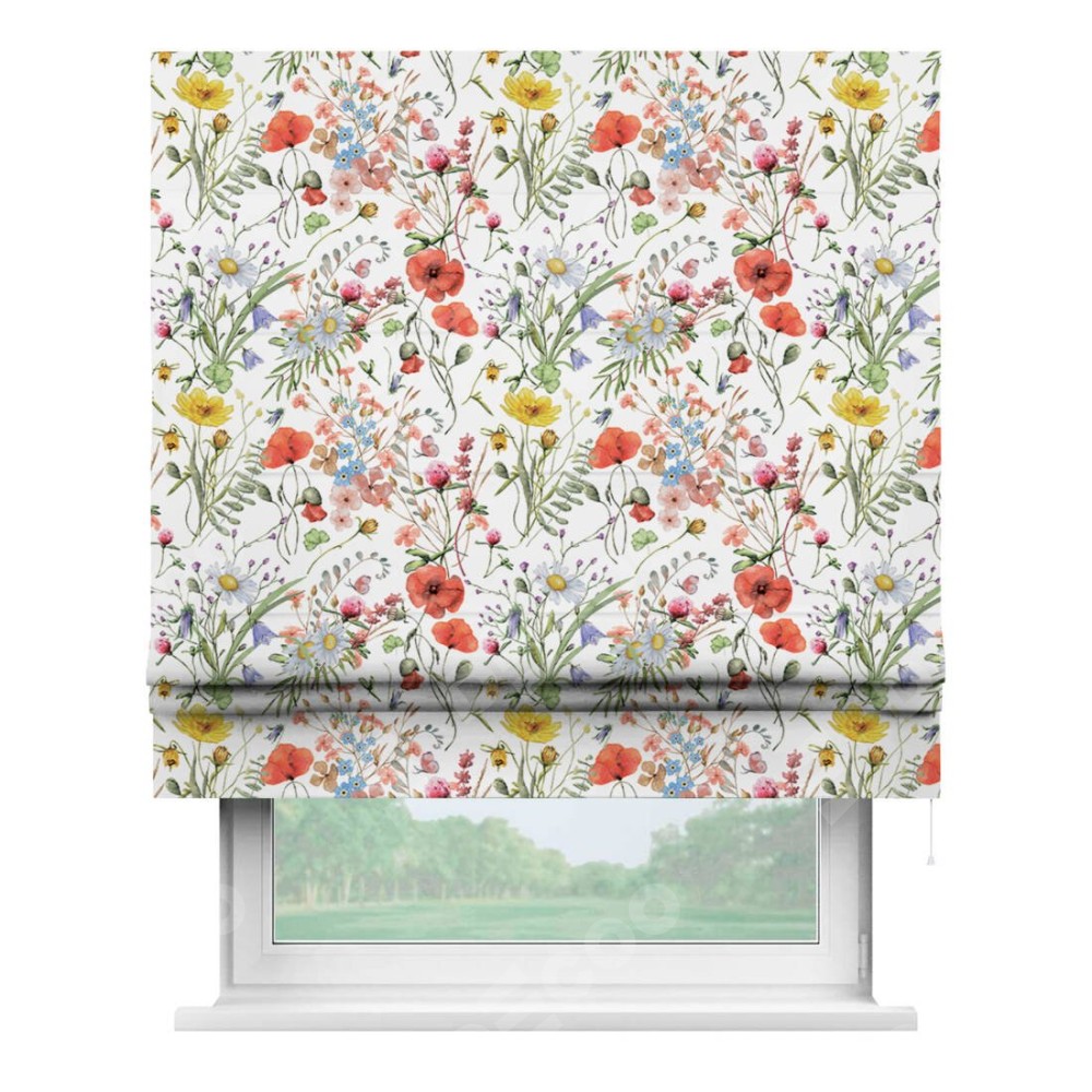 Классическая римская штора производителя «Cortin», пошита из ткани блэкаут с нанесением сублимационной печати «Полевые маки». Имеет универсальный механизм и подходит для монтажа: на потолок, на стену и в нишу.