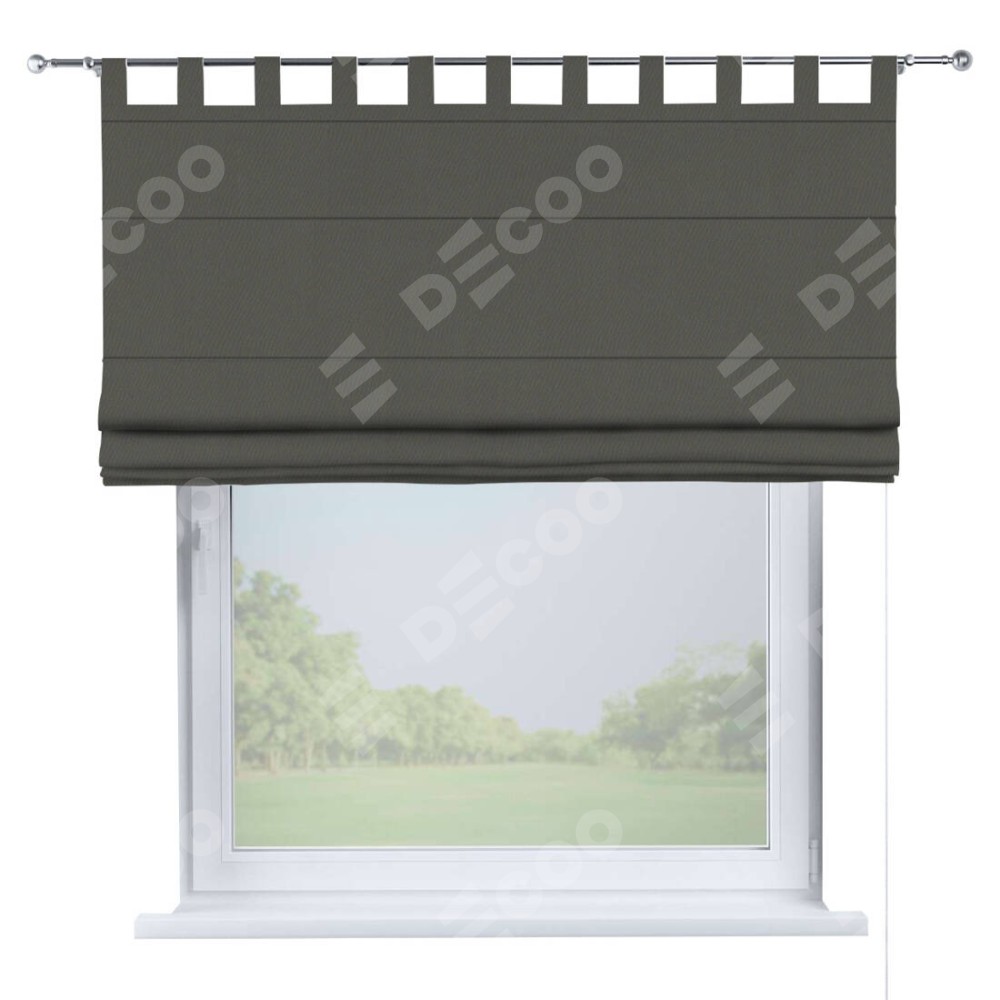 Римская штора производителя «Cortin», используется для проёма, пошита из ткани блэкаут однотонный тёмно-серый, артикул ткани 91570. Данная модель пошита на петлях, комплектуется на выбор круглым карнизом и подходит для монтажа на стену. Римская штора на петлях имеет простую систему регулировки высоты, отличительным преимуществом данной модели является простой способ монтажа. Достаточно повесить ее на трубу и штора готова!