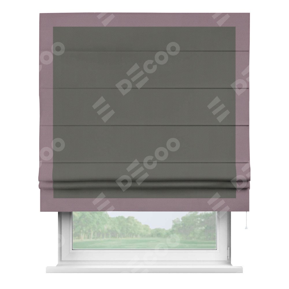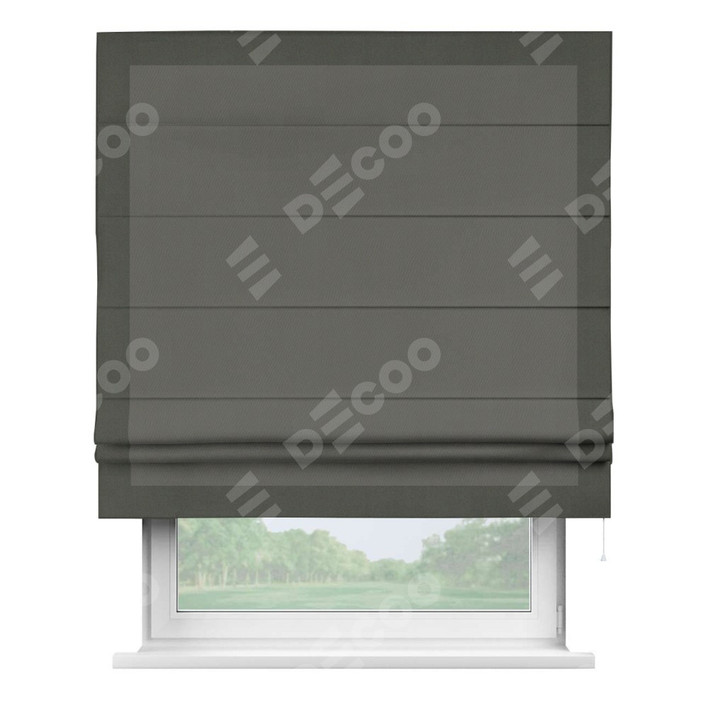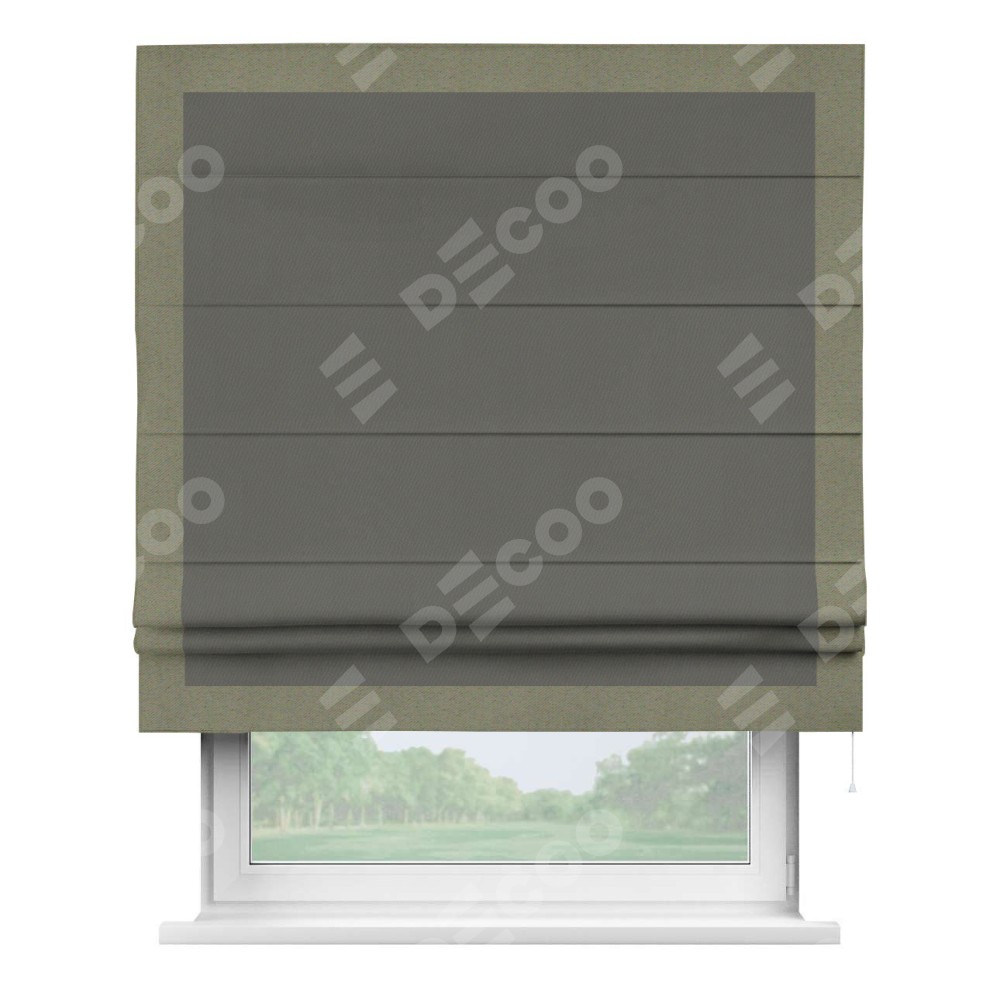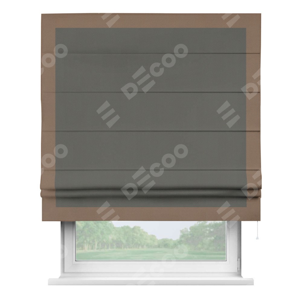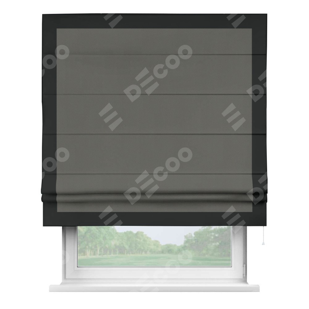 Римская штора «Кортин» для проема, блэкаут однотонный тёмно-серый с кантом Чесс