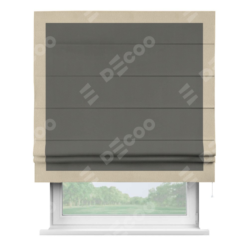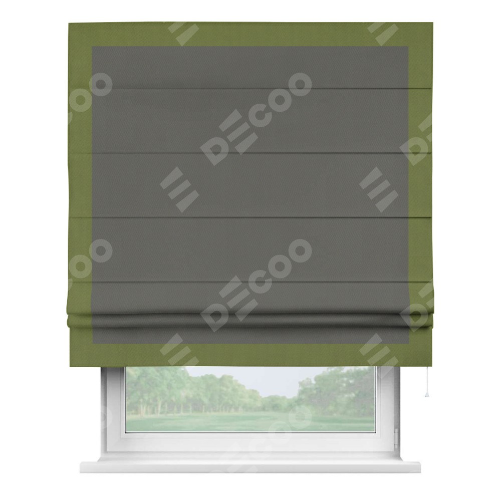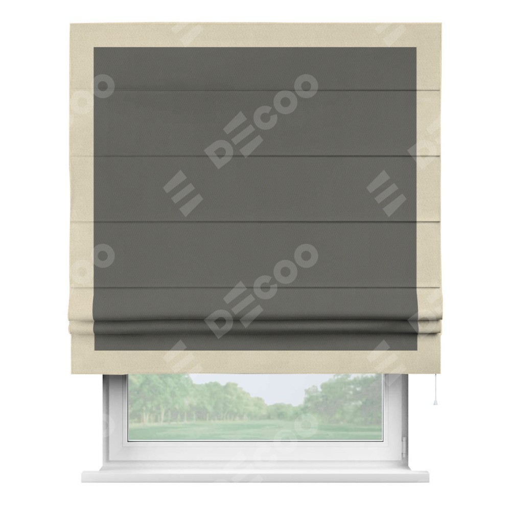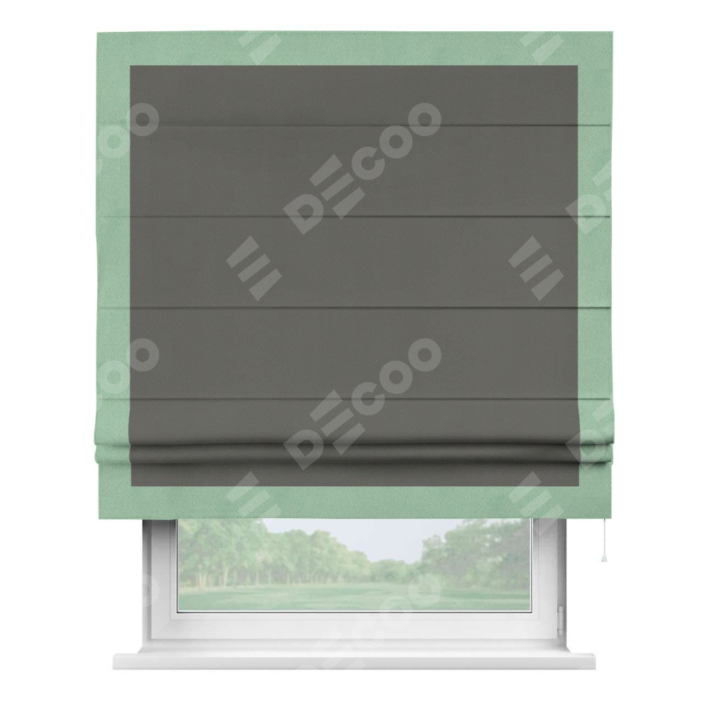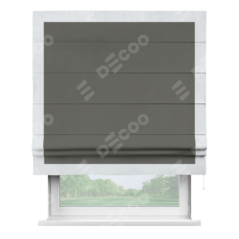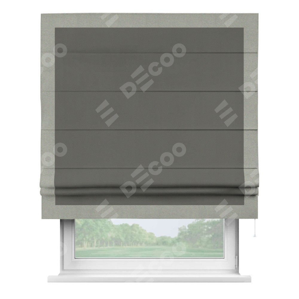 Римская штора «Кортин» для проема, блэкаут однотонный тёмно-серый с кантом Чесс