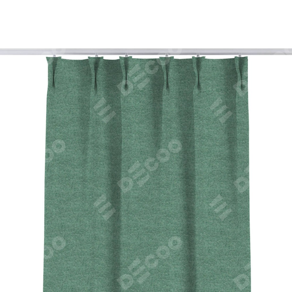 Комплект прямых штор, от производителя «Cortin», пошиты из ткани твид блэкаут бирюзовый, артикул ткани 90934. С изнаночной стороны в верхней части штор пристрачивается шторная лента с декоративными складками «Кустик». Для создания элегантных складок прямые шторы шьются по стандарту с коэффициентом 1:2 (на 100 см. ширины проёма 200 см. ширины ткани).