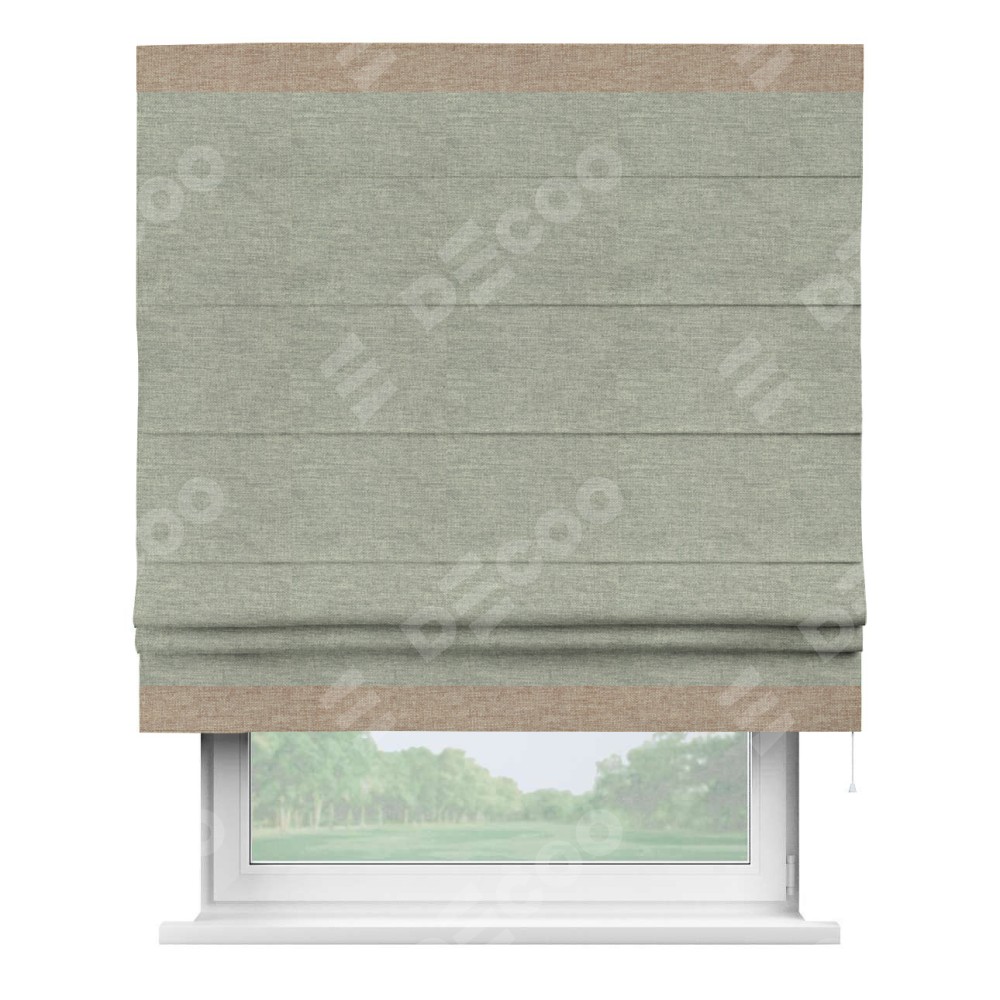 Римская штора производителя «Cortin», используется для проёма, пошита из ткани лён кашемир серый new, артикул 21618. Отделка шторы кантом «Горизонт», ткань для канта используется из льна разной расцветки на выбор. Имеет универсальный механизм и подходит для монтажа: на потолок, на стену и в нишу.