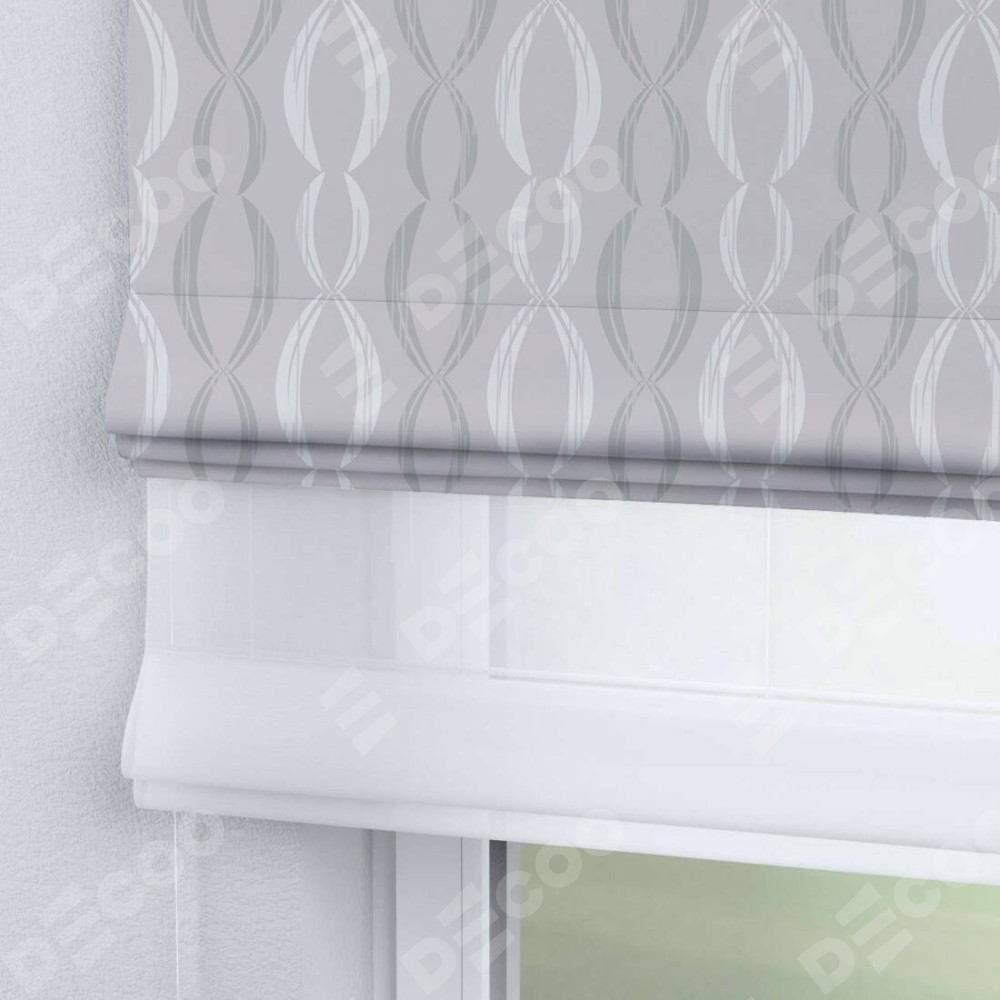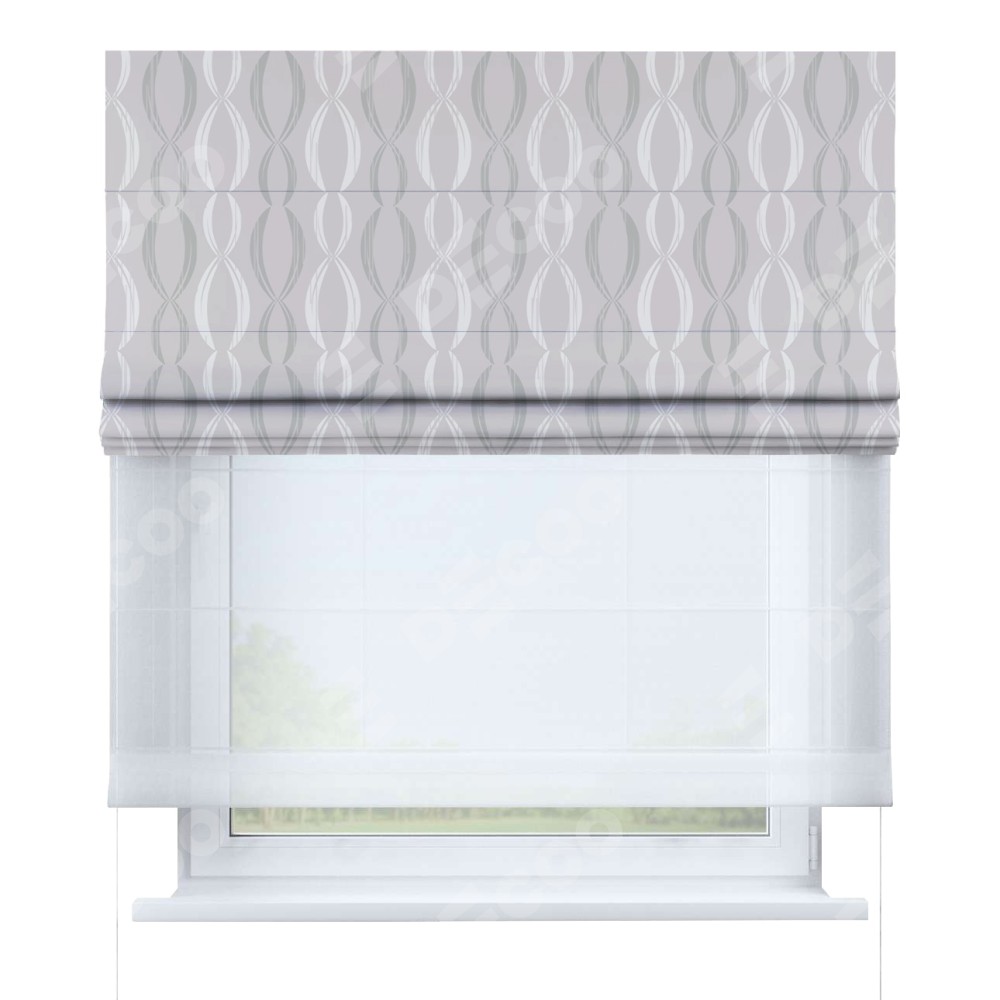 Двойная римская штора «День-ночь» от производителя Cortin предназначена для использования в проёмах. Эта штора уникальна тем, что состоит из двух полотен. На лицевой стороне находится блэкаут с нанесением сублимационной печати «Омега», обеспечивающий эффективное затемнение. В комплект также входит вторая ткань — легкий белый тюль (артикул: V-01), который добавляет изящества и легкости оформлению окна. Кроме того, доступны и другие разновидности ткани тюль, выбор которых доступен по  ссылке .
