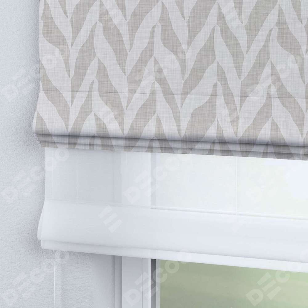 Двойная римская штора «День-ночь» от производителя Cortin предназначена для использования в проёмах. Эта штора уникальна тем, что состоит из двух полотен. На лицевой стороне находится блэкаут с нанесением сублимационной печати «Песочный зебрано», обеспечивающий эффективное затемнение. В комплект также входит вторая ткань — легкий белый тюль (артикул: V-01), который добавляет изящества и легкости оформлению окна. Кроме того, доступны и другие разновидности ткани тюль, выбор которых доступен по  ссылке .