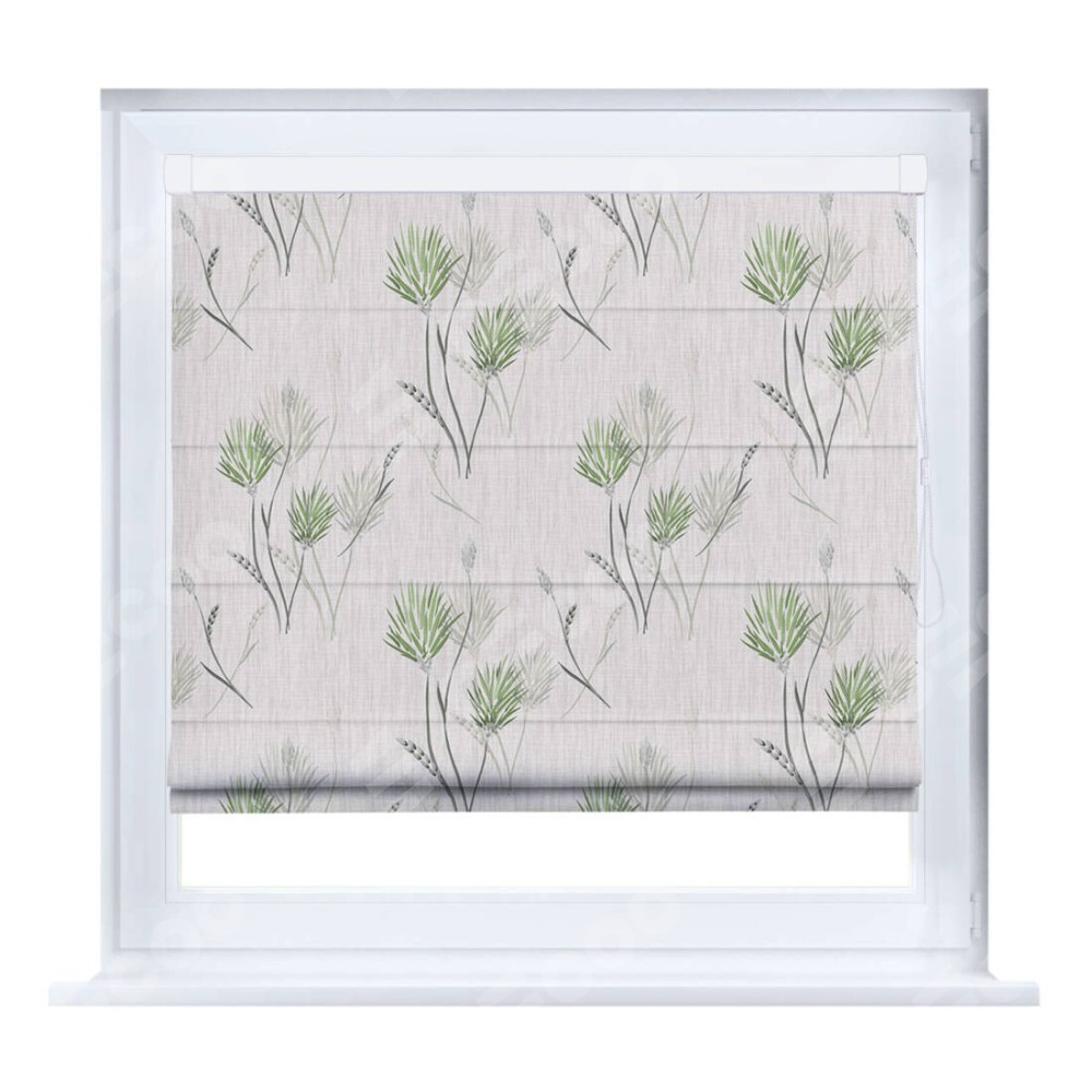 Римская штора производителя «Cortin», устанавливается на створку окна, пошита из ткани блэкаут с нанесением сублимационной печати «Полевые травы бежевый». Штора шьётся по индивидуальным размерам, для данного типа римской шторы возможная ширина от 35 до 150 см., высота до 250 см.