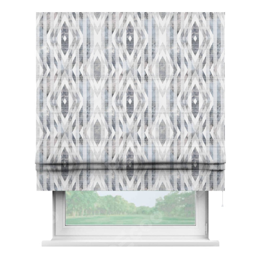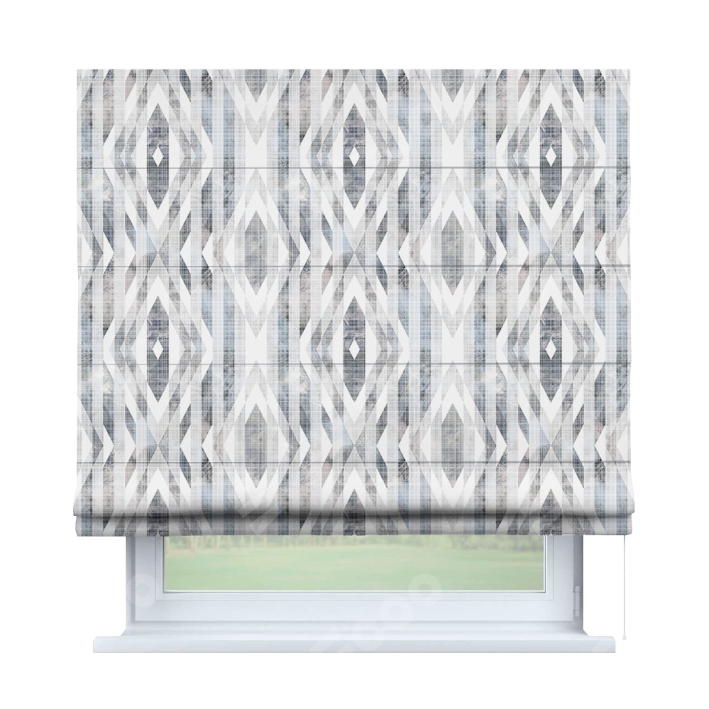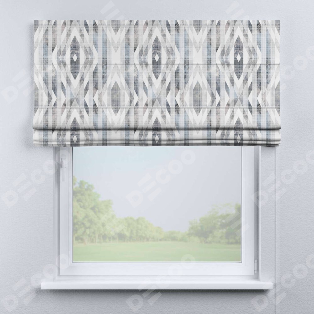 Классическая римская штора представляет собой полотно прикрепленное к карнизу, с обратной стороны полотна вшиты планки. С их помощь при сборе шторы образуются красивые горизонтальные складки.