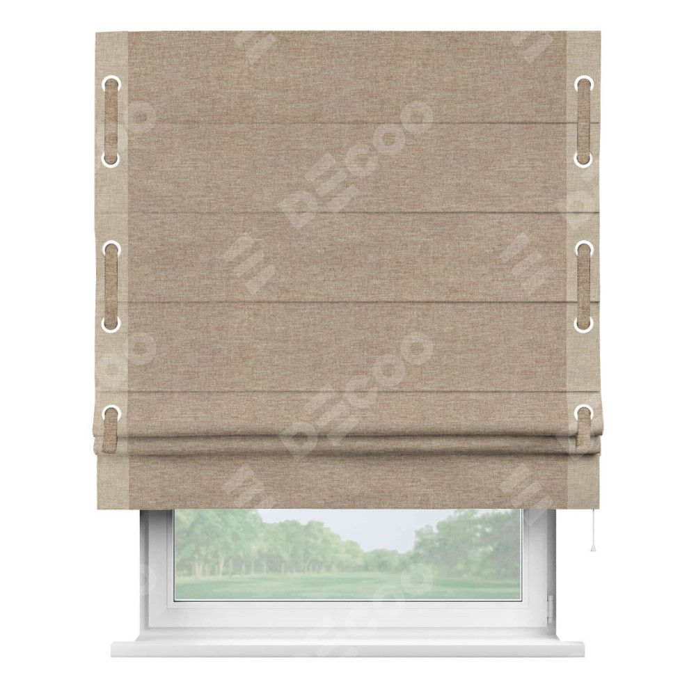 Римская штора «Кортин» с кантом Стрим Дуо (люверсы с пояском), для проема, ткань лён кашемир коричневый