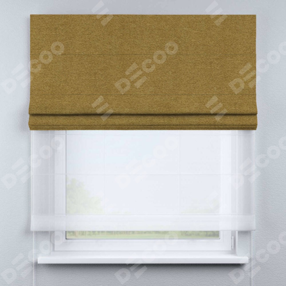 Римская штора «Кортин», твид блэкаут горчица, день-ночь