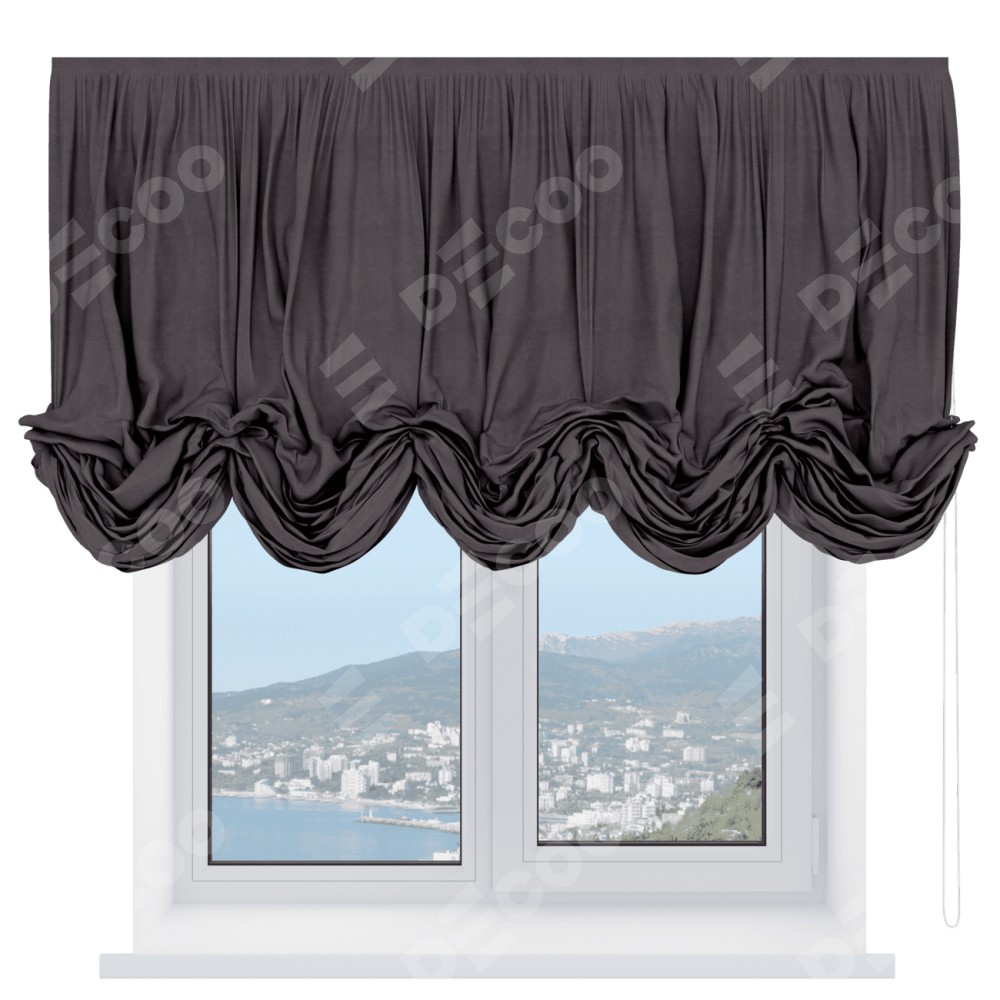 Австрийская штора производителя «Cortin», используется для проёма, пошита из ткани вельвет коричневый, артикул ткани 14135. Имеет универсальный механизм и подходит для монтажа: на потолок и на стену.
