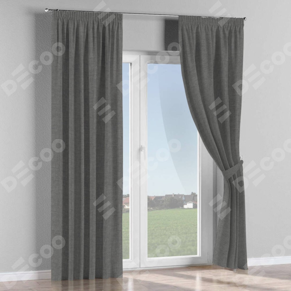Комплект штор лён тёмно-серый, на тесьме «Карандаш»