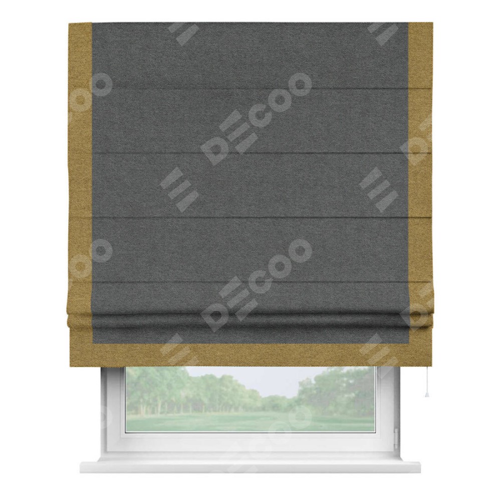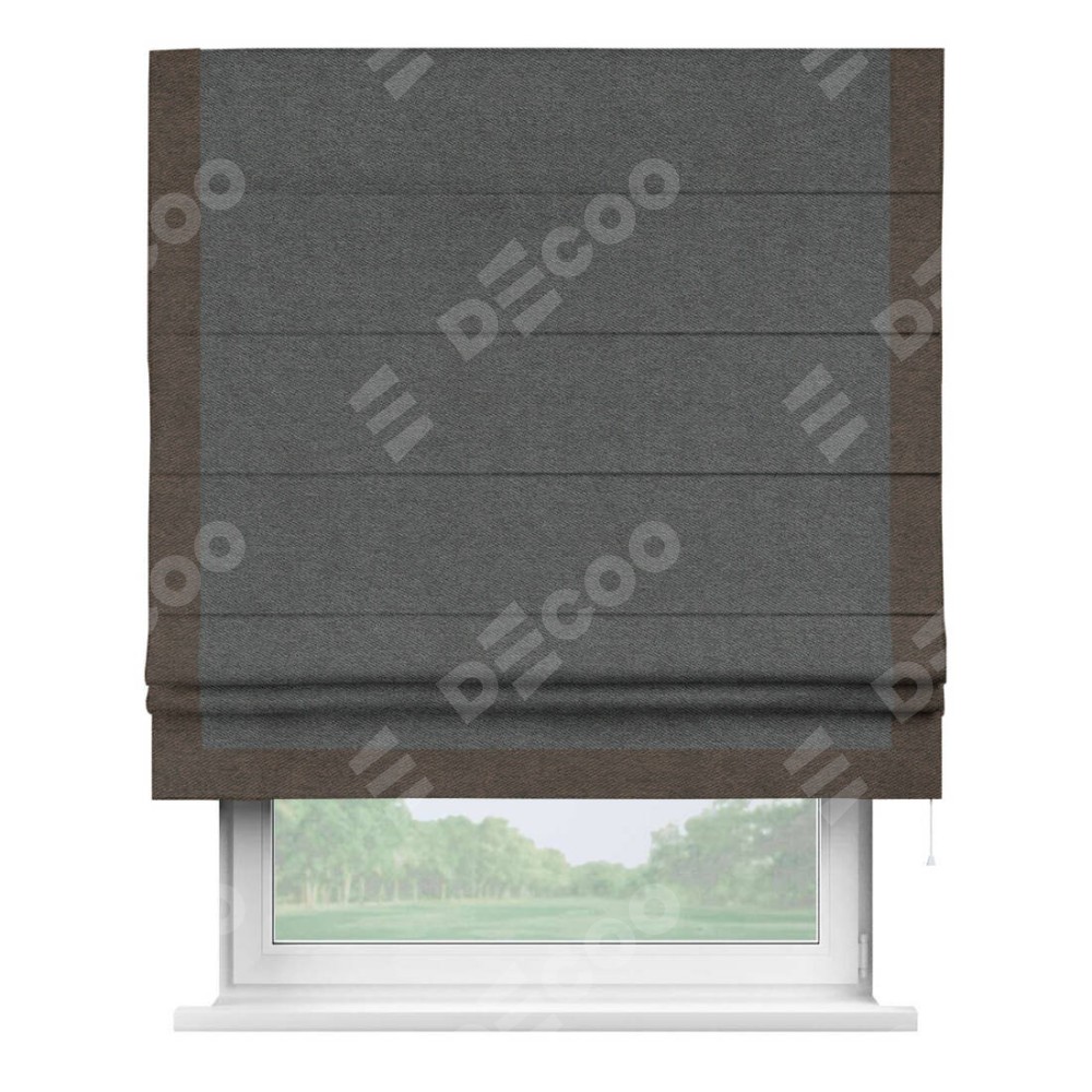 Римская штора «Кортин» для проема, твид блэкаут тёмно-серый, с кантом Виктория