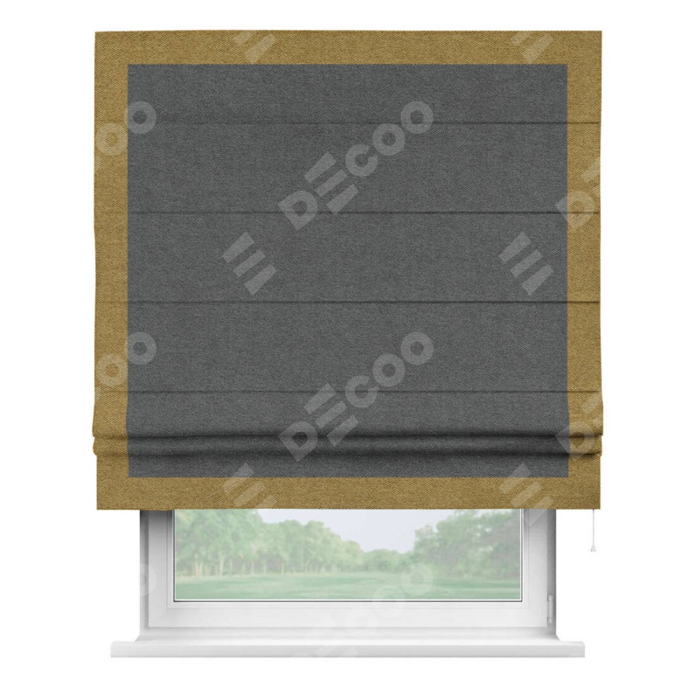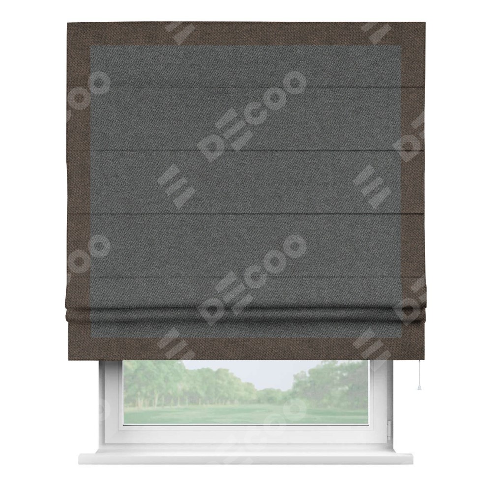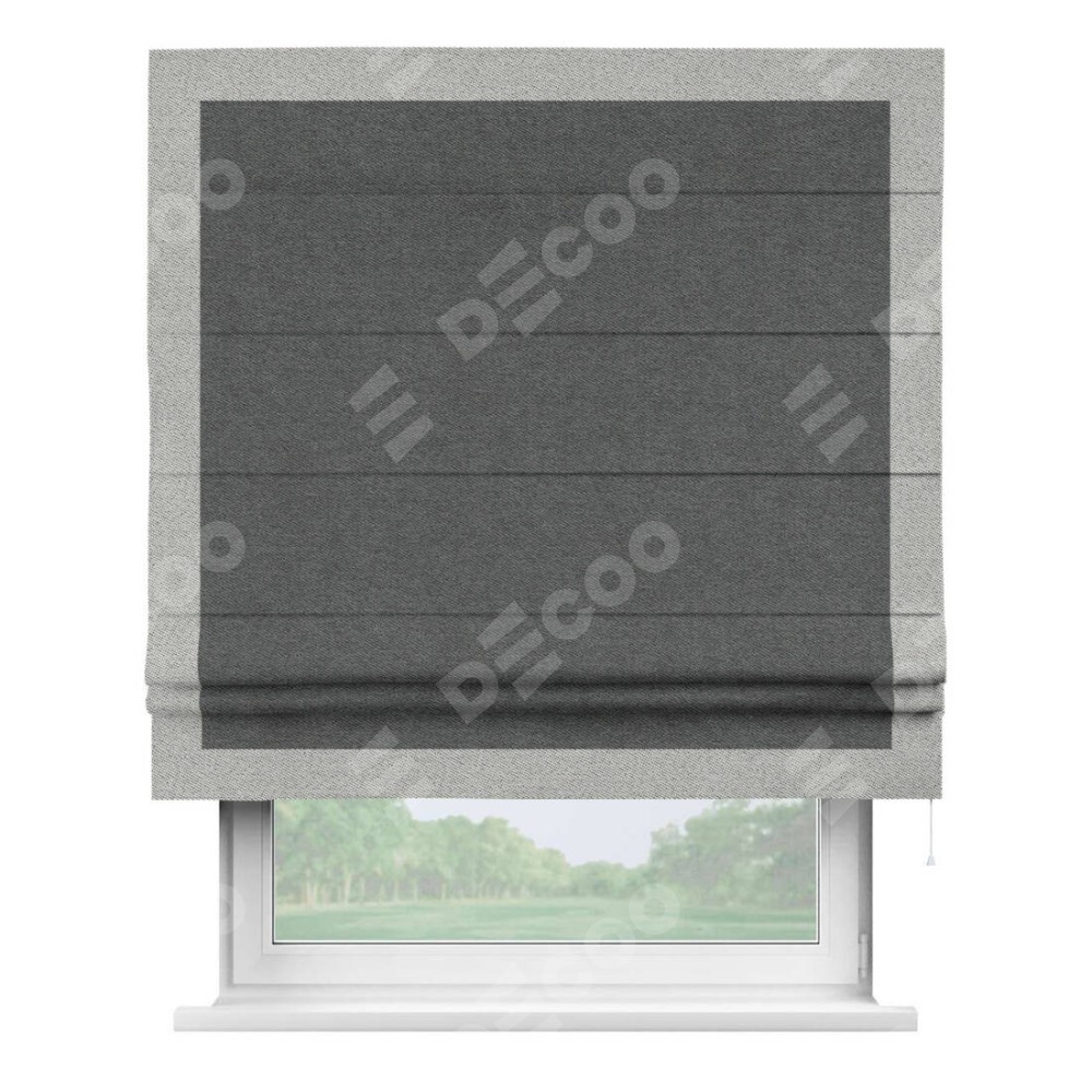 Римская штора «Кортин» для проема, твид блэкаут тёмно-серый, с кантом Чесс