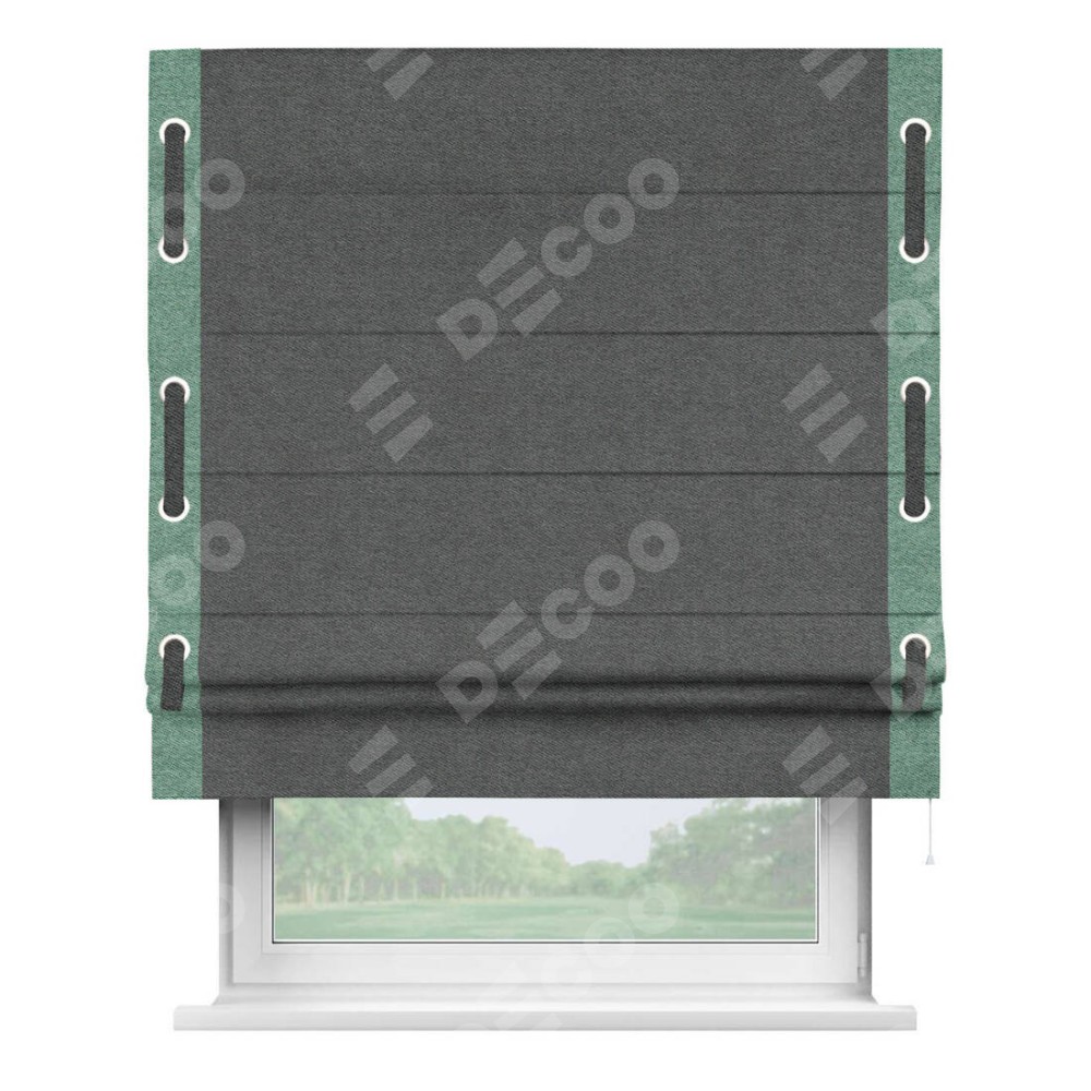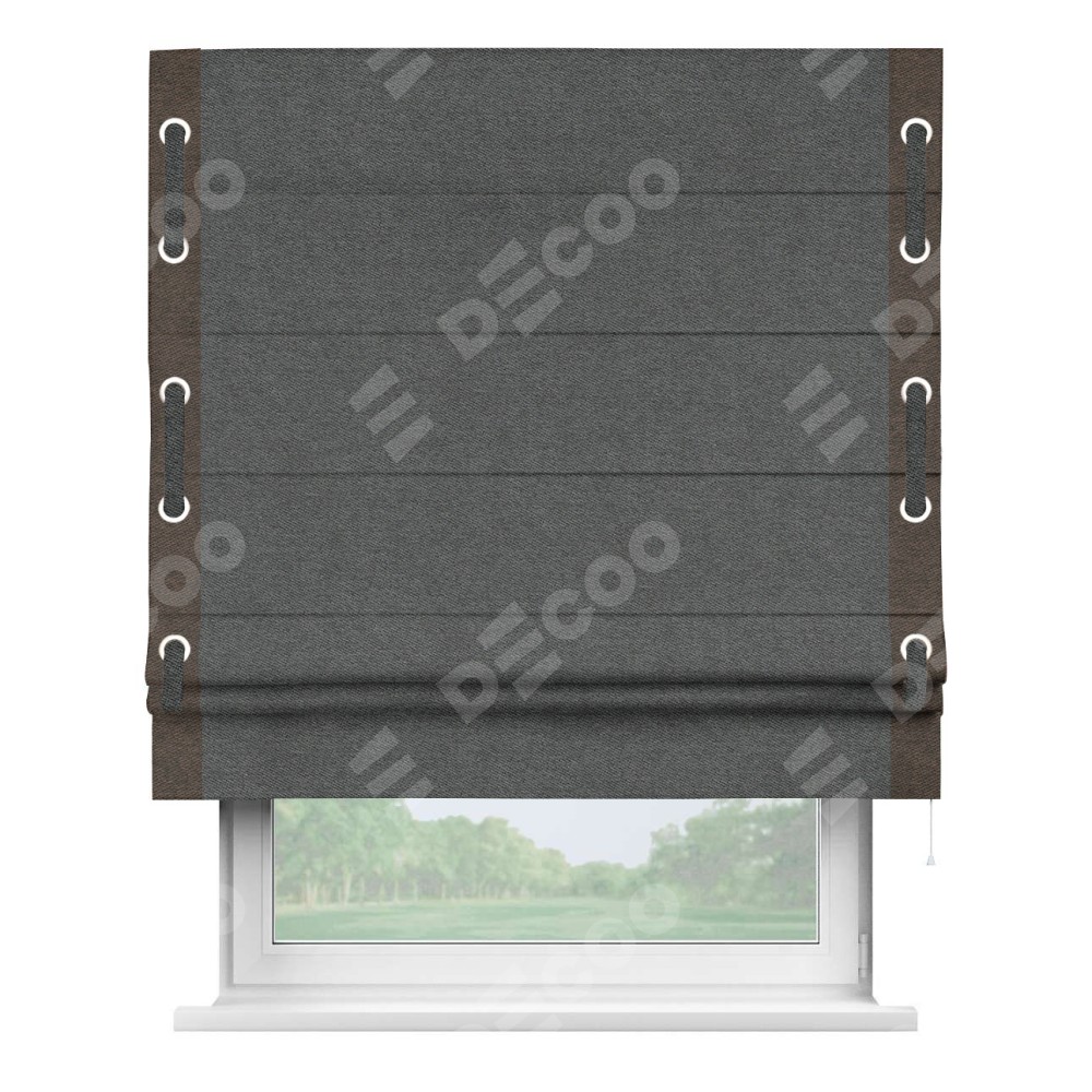 Римская штора «Кортин» для проема, твид блэкаут тёмно-серый, с кантом Стрим Дуо (люверсы с пояском)
