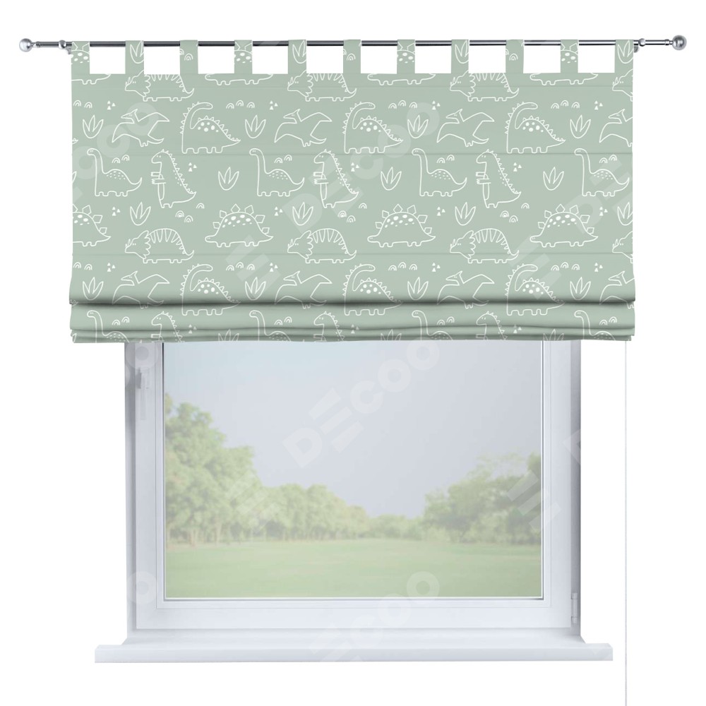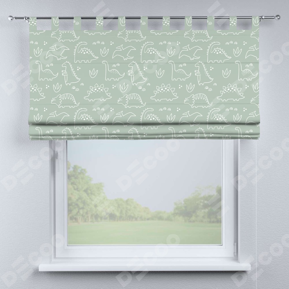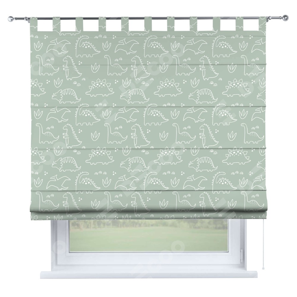Римская штора производителя «Cortin», используется для проёма, пошита из ткани блэкаут с нанесением сублимационной печати «Динопарк». Данная модель пошита на петлях, комплектуется на выбор круглым карнизом и подходит для монтажа на стену. Римская штора на петлях имеет простую систему регулировки высоты, отличительным преимуществом данной модели является простой способ монтажа. Достаточно повесить ее на трубу и штора готова!