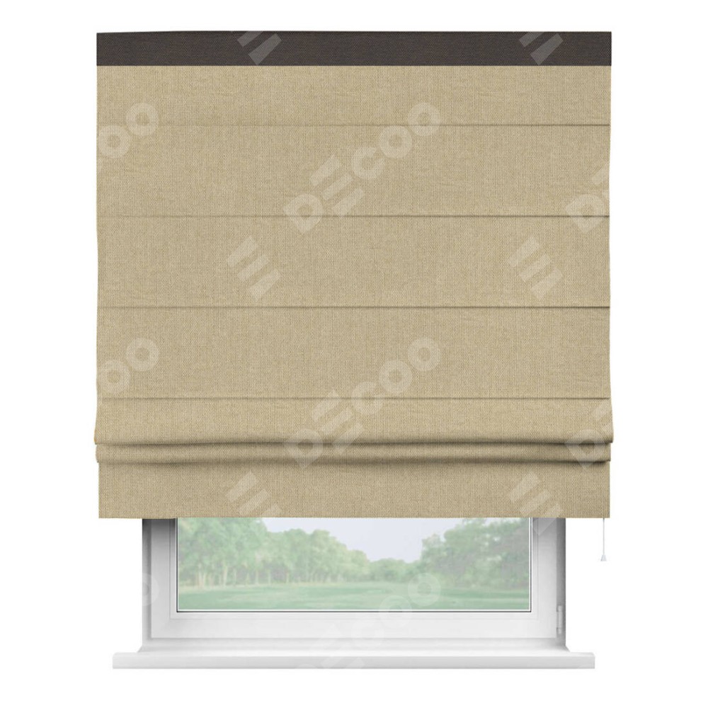 Римская штора «Кортин» для проема, лён димаут песочный с кантом Кинг