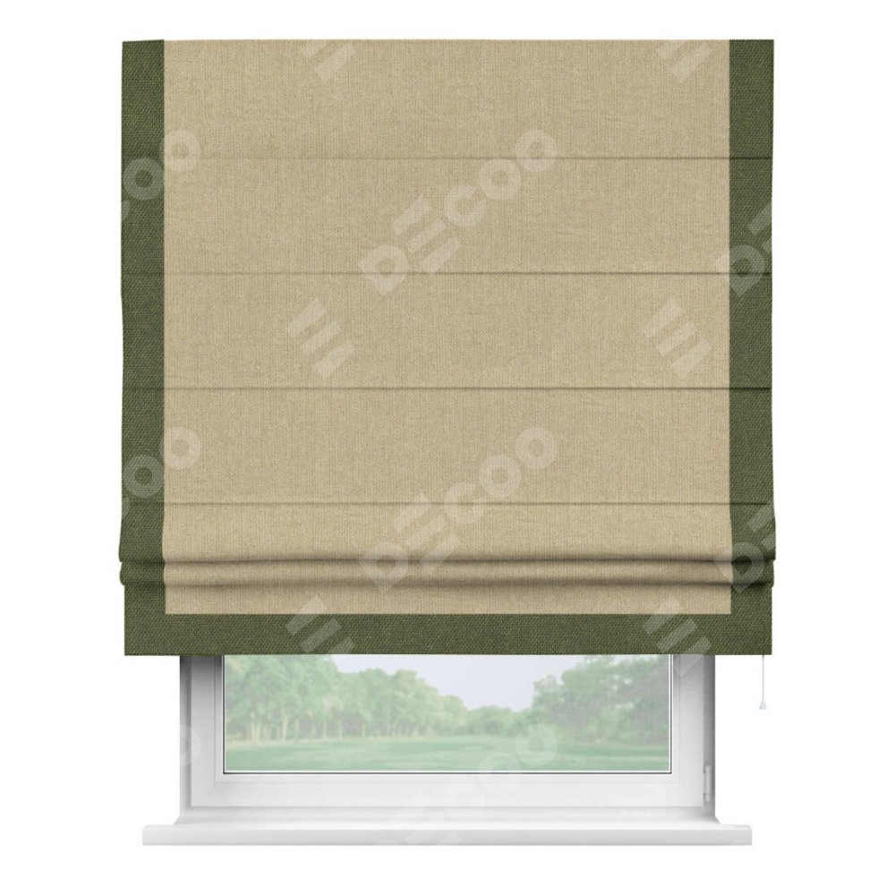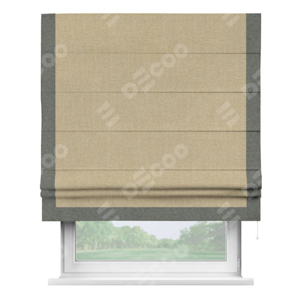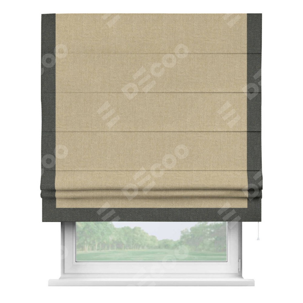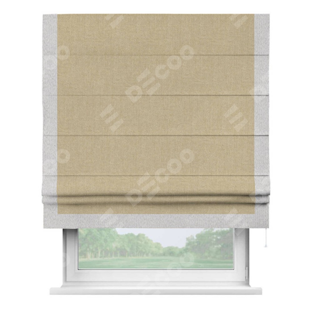 Римская штора «Кортин» для проема, лён димаут песочный с кантом Виктория