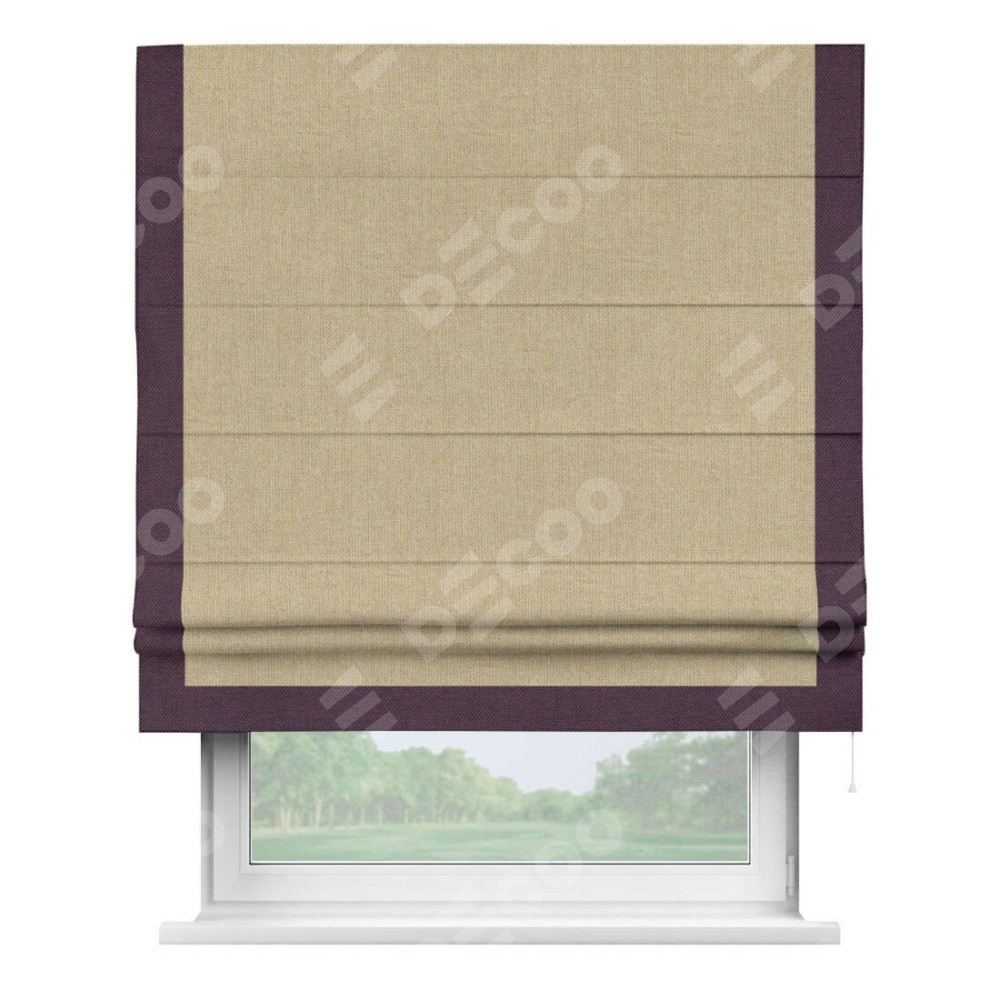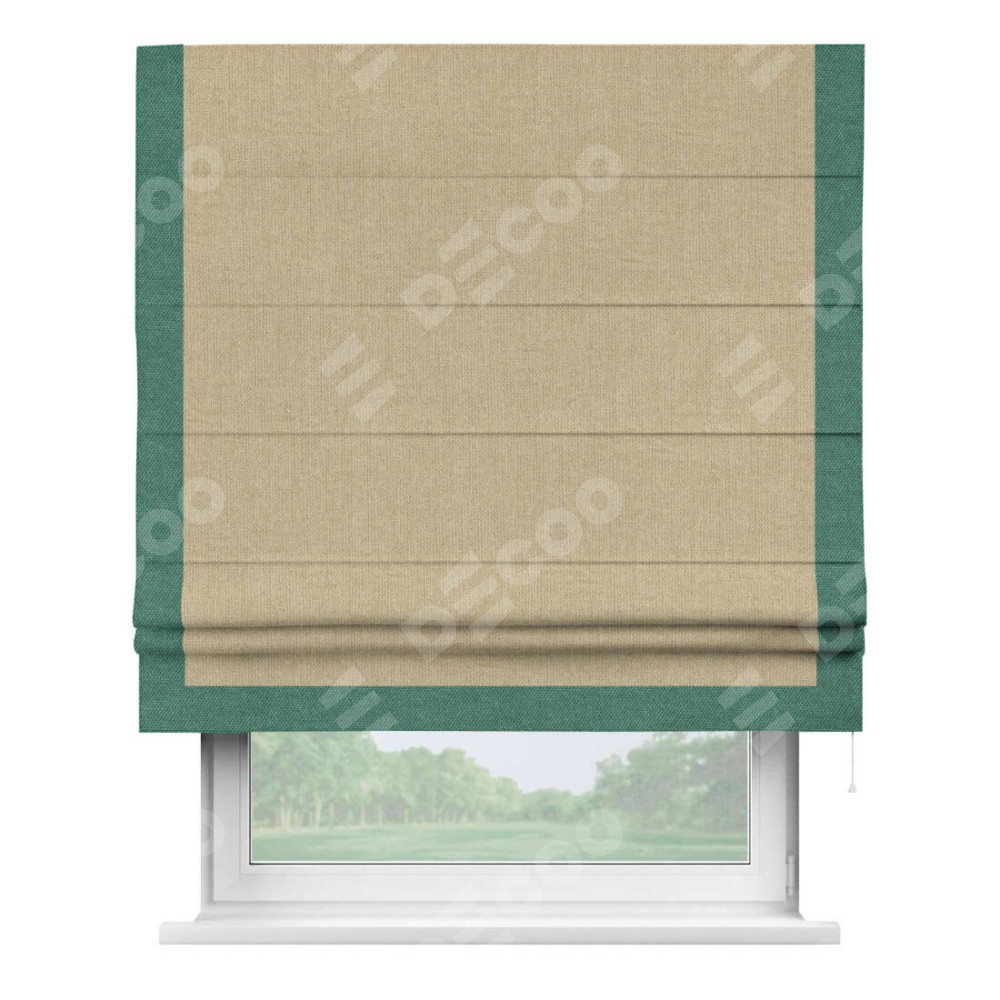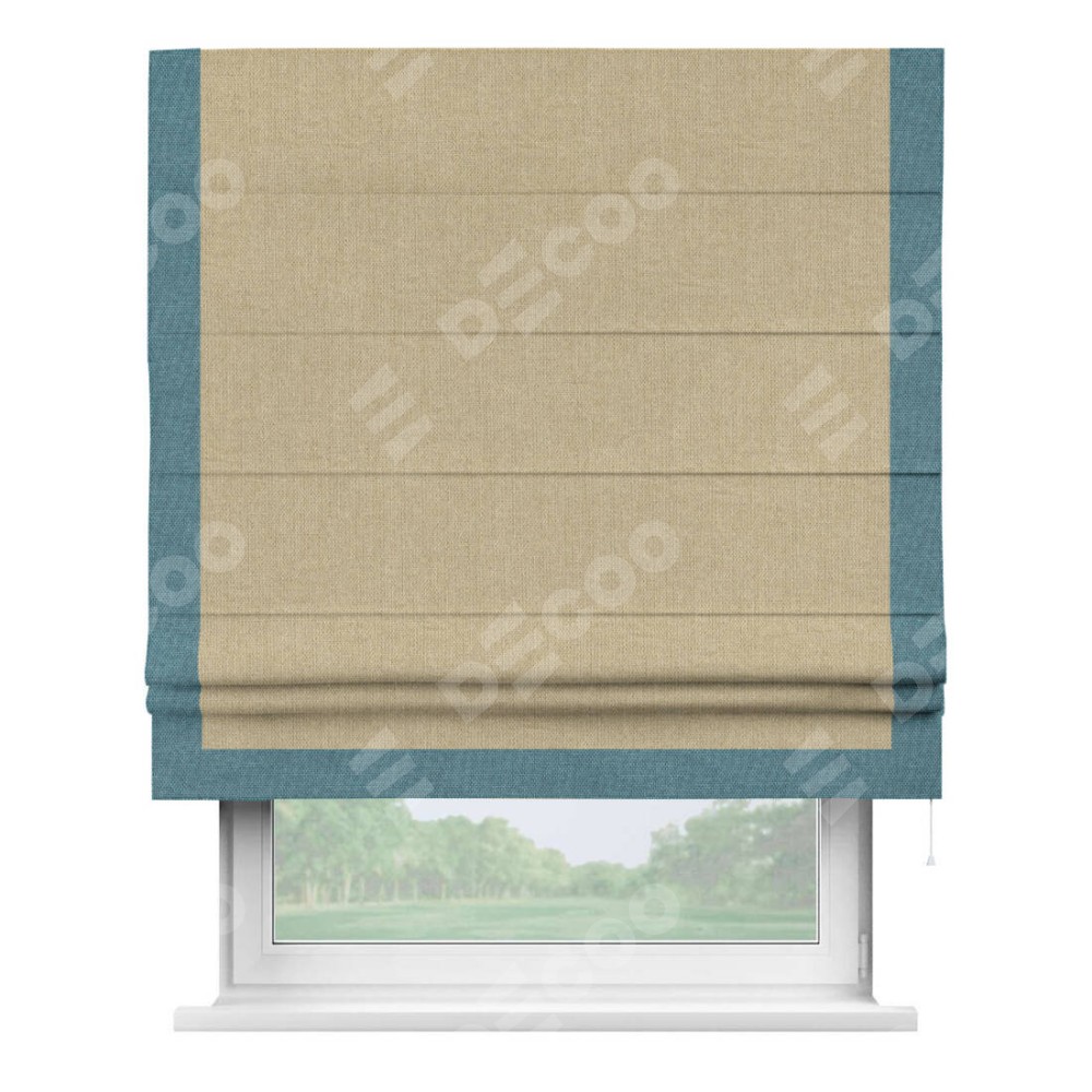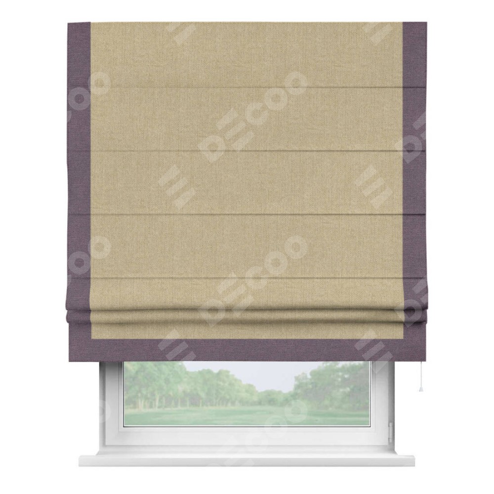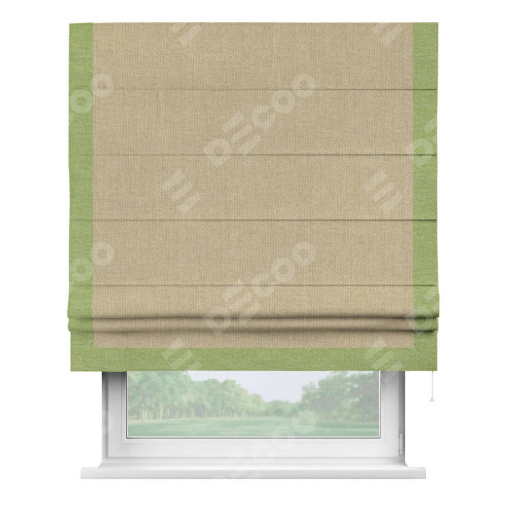 Римская штора «Кортин» для проема, лён димаут песочный с кантом Виктория