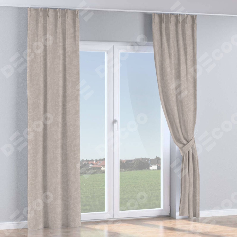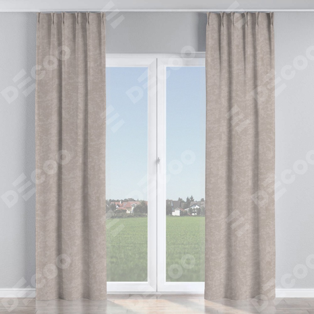 Комплект прямых штор, от производителя «Cortin», пошиты из ткани софт мрамор пудровый, артикул ткани 93578. С изнаночной стороны в верхней части штор пристрачивается шторная лента с декоративными складками «Кустик». Для создания элегантных складок прямые шторы шьются по стандарту с коэффициентом 1:2 (на 100 см. ширины проёма 200 см. ширины ткани).