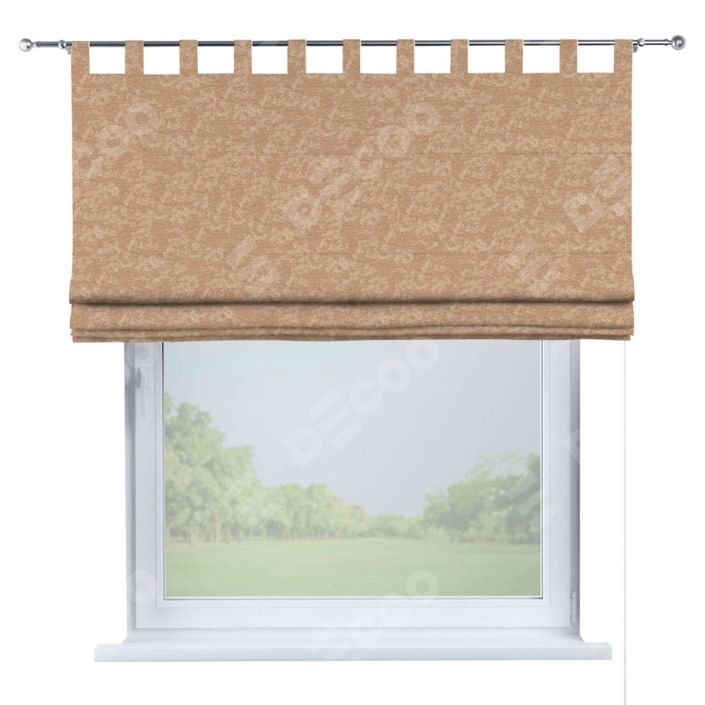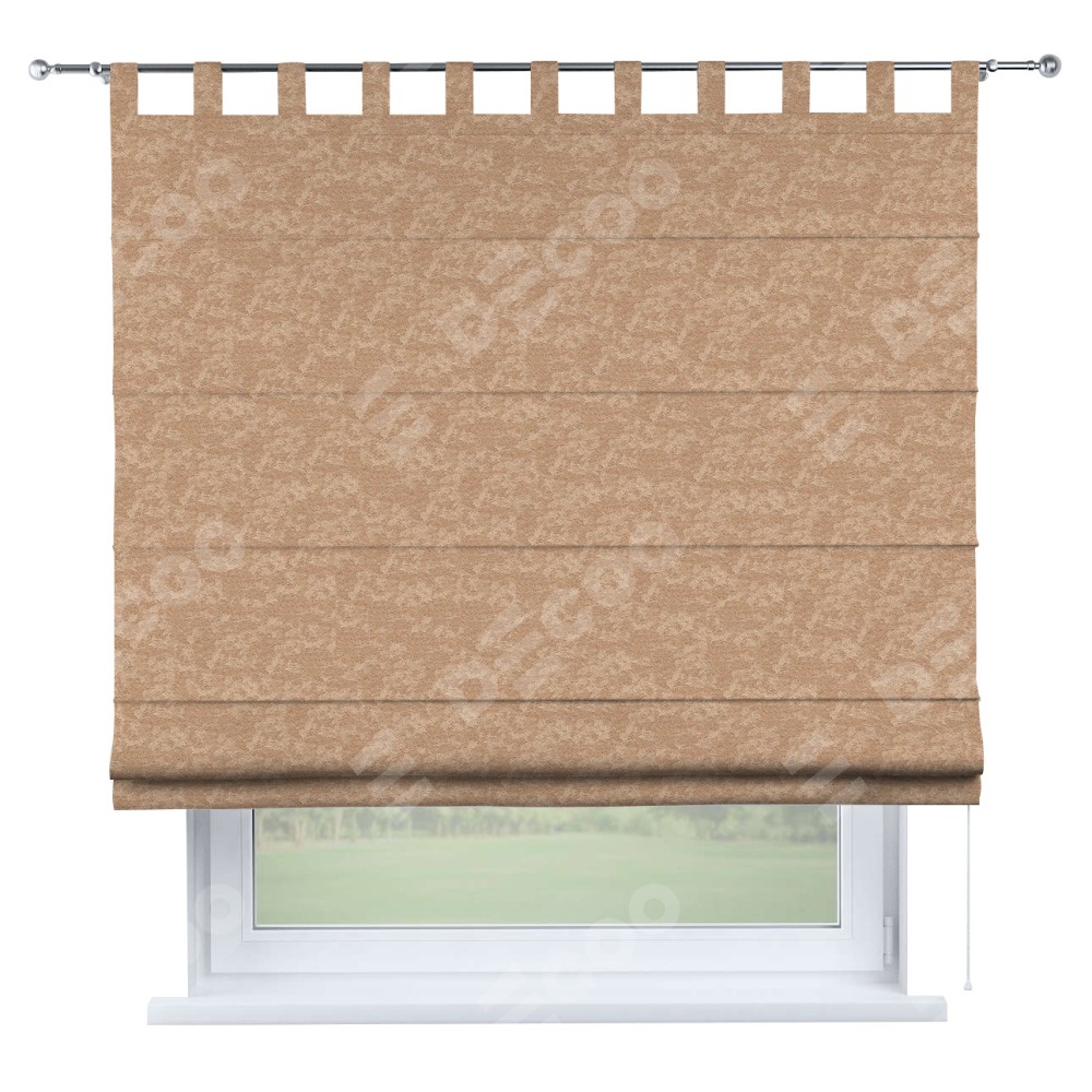 Римская штора производителя «Cortin», используется для проёма, пошита из ткани софт мрамор бронзовый, артикул ткани 93576. Данная модель пошита на петлях, комплектуется на выбор круглым карнизом и подходит для монтажа на стену. Римская штора на петлях имеет простую систему регулировки высоты, отличительным преимуществом данной модели является простой способ монтажа. Достаточно повесить ее на трубу и штора готова!