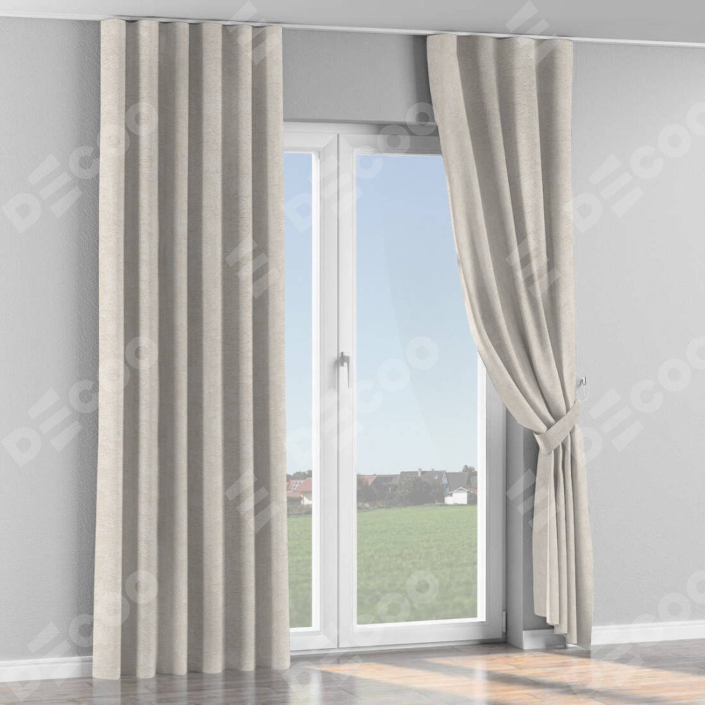 Комплект прямых штор, от производителя «Cortin», пошиты из ткани софт мрамор кремовый, артикул ткани 93574. С изнаночной стороны в верхней части штор пристрачивается шторная лента с декоративными складками «Волна». Для создания элегантных складок прямые шторы шьются по стандарту с коэффициентом 1:2 (на 100 см. ширины проёма 200 см. ширины ткани).