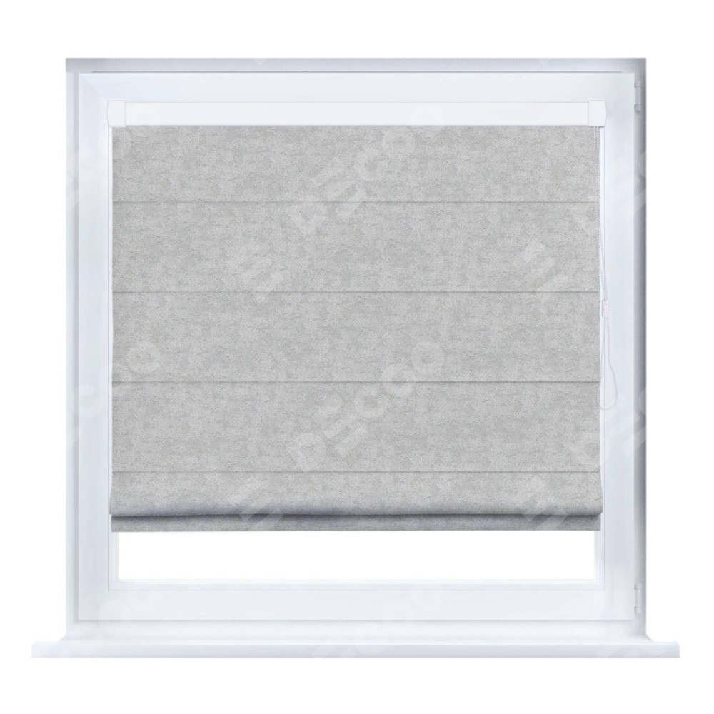 Римская штора производителя «Cortin», устанавливается на створку окна, пошита из ткани софт мрамор светло-серый, артикул 93582. Штора шьётся по индивидуальным размерам, для данного типа римской шторы возможная ширина от 35 до 150 см., высота до 250 см.