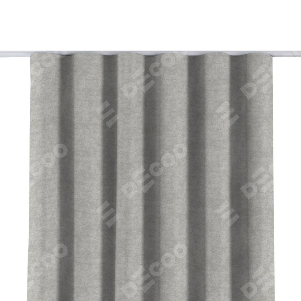 Комплект прямых штор, от производителя «Cortin», пошиты из ткани софт мрамор светло-серый, артикул ткани 93582. С изнаночной стороны в верхней части штор пристрачивается шторная лента с декоративными складками «Волна». Для создания элегантных складок прямые шторы шьются по стандарту с коэффициентом 1:2 (на 100 см. ширины проёма 200 см. ширины ткани).