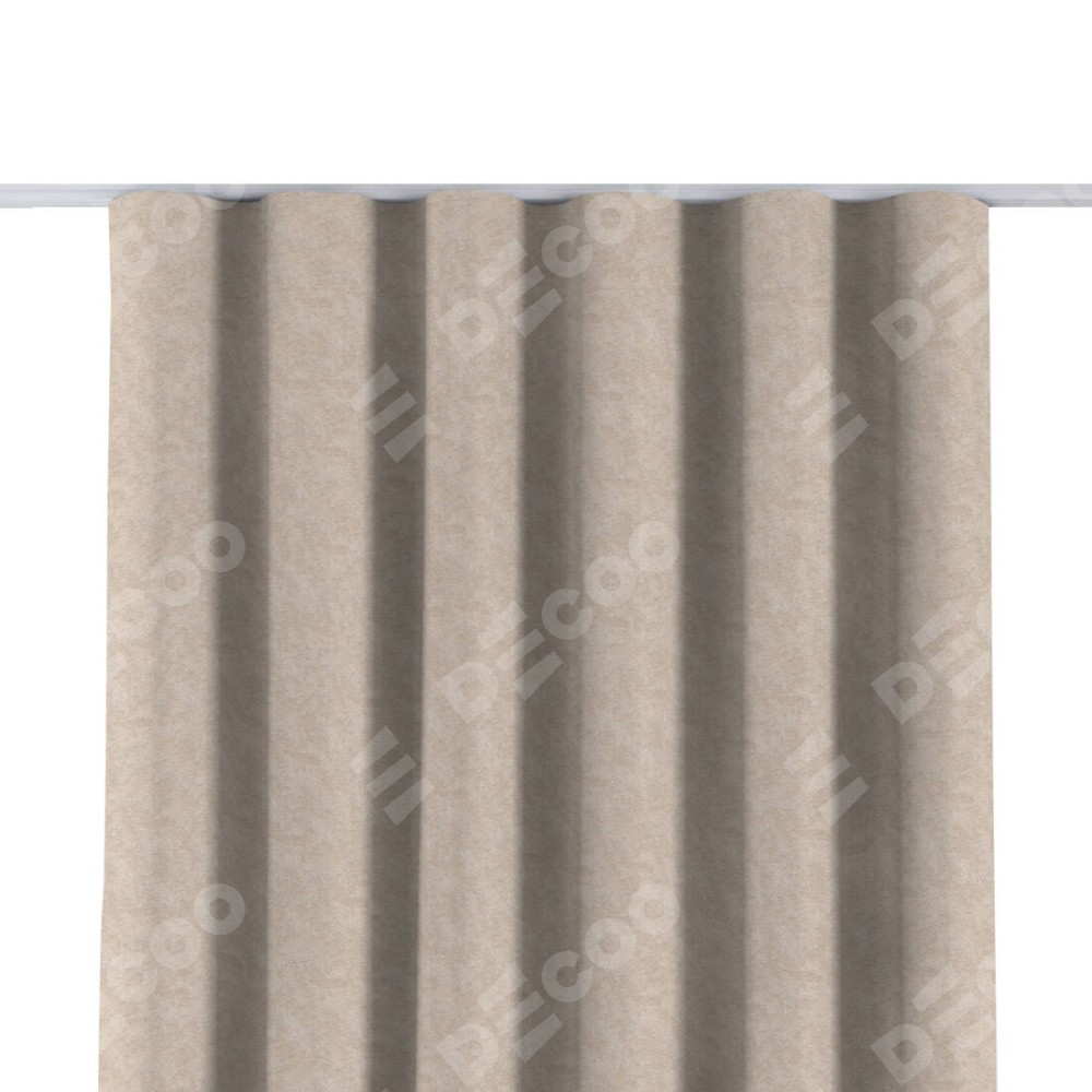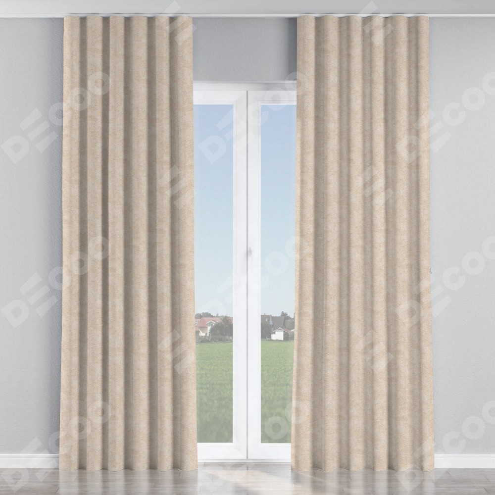 Комплект прямых штор, от производителя «Cortin», пошиты из ткани софт мрамор шампань, артикул ткани 93575. С изнаночной стороны в верхней части штор пристрачивается шторная лента с декоративными складками «Волна». Для создания элегантных складок прямые шторы шьются по стандарту с коэффициентом 1:2 (на 100 см. ширины проёма 200 см. ширины ткани).