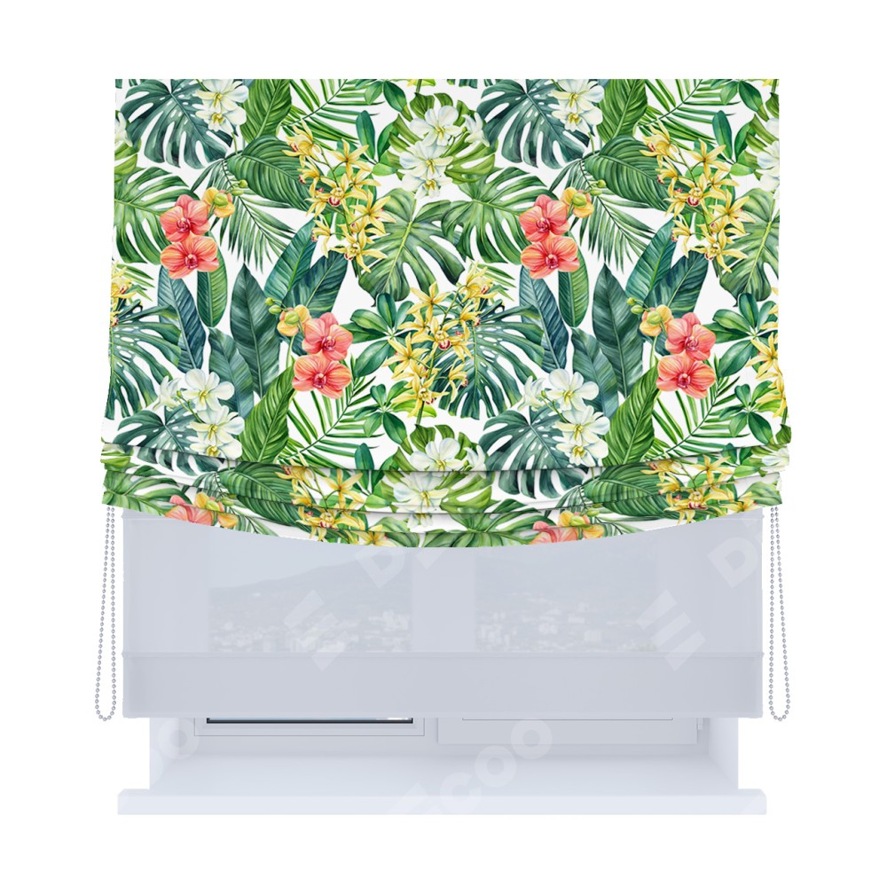 Римская штора «Кортин», день-ночь с мягкими складками, «Орхидеи в тропиках»