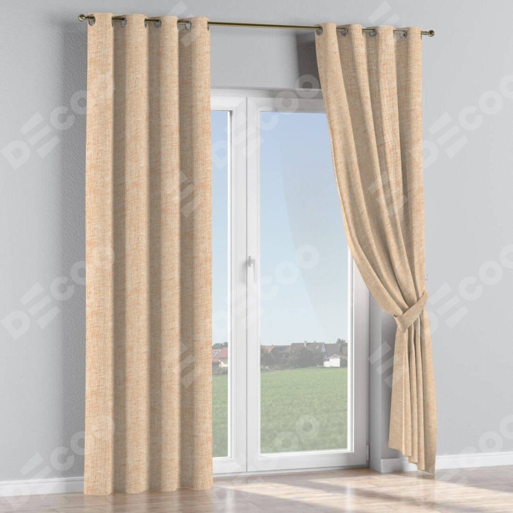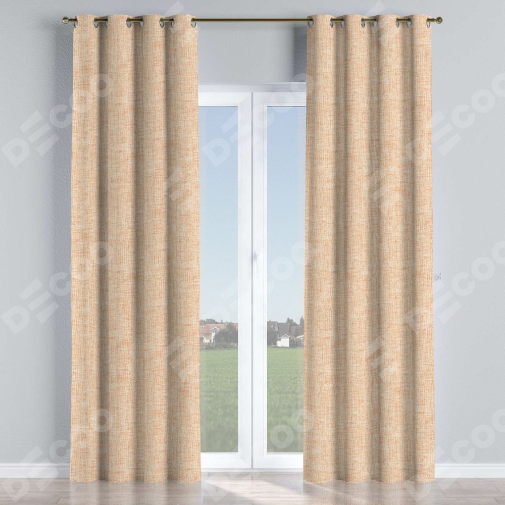 Комплект прямых штор, от производителя «Cortin», пошиты из ткани рогожка димаут персиковый, артикул ткани 91016. Данная модель пошита на люверсах, комплектуется на выбор круглым карнизом и подходит для монтажа на стену или потолок. Прямые шторы на люверсах шьются по стандарту с коэффициентом 1/2 (на 100 см. ширины проёма 200 см. ширины ткани), отличительным преимуществом данной модели является простой способ монтажа. Достаточно повесить ее на трубу и штора готова!