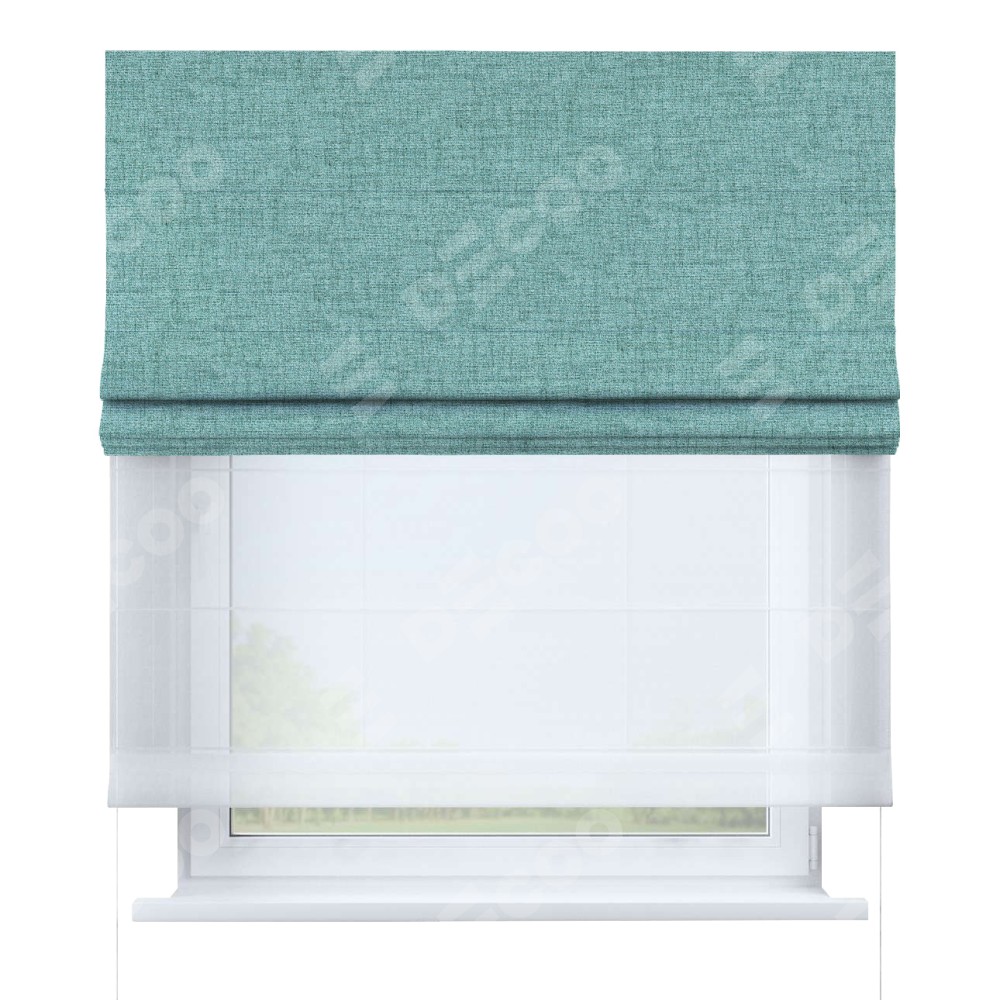 Римская штора «Кортин», рогожка димаут аквамариновый крайола, день-ночь