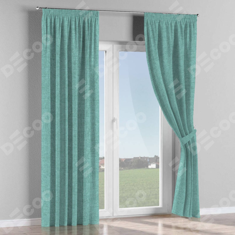 Комплект штор рогожка димаут аквамариновый крайола, на тесьме «Карандаш»