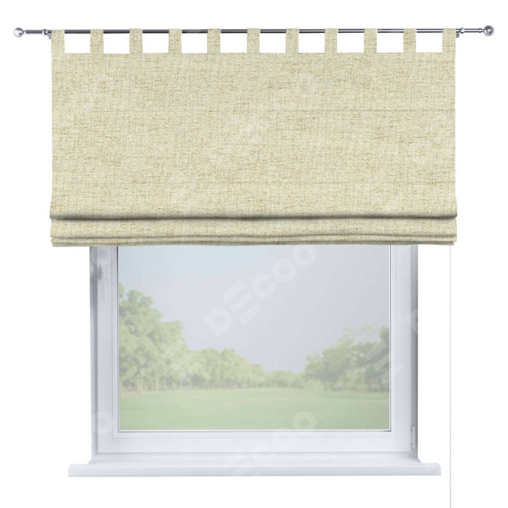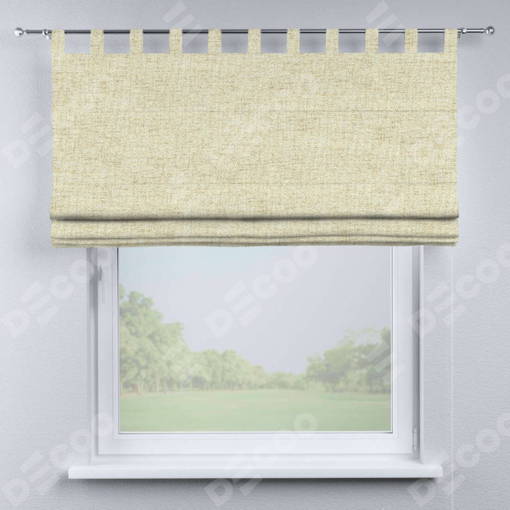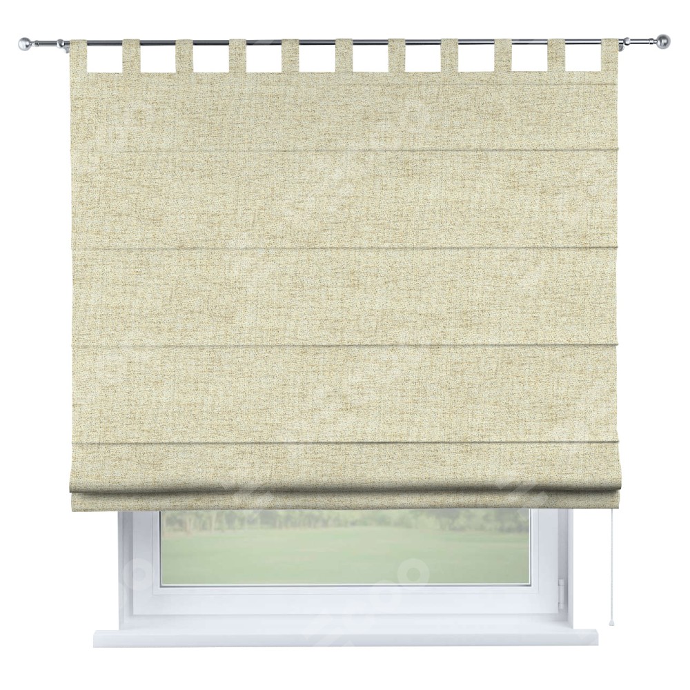 Римская штора производителя «Cortin», используется для проёма, пошита из ткани рогожка димаут золотой песок, артикул ткани 91015. Данная модель пошита на петлях, комплектуется на выбор круглым карнизом и подходит для монтажа на стену. Римская штора на петлях имеет простую систему регулировки высоты, отличительным преимуществом данной модели является простой способ монтажа. Достаточно повесить ее на трубу и штора готова!