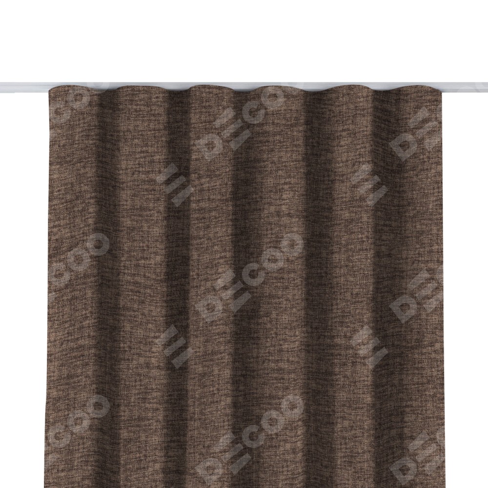 Комплект прямых штор, от производителя «Cortin», пошиты из ткани рогожка димаут коричневый, артикул ткани 91018. С изнаночной стороны в верхней части штор пристрачивается шторная лента с декоративными складками «Волна». Для создания элегантных складок прямые шторы шьются по стандарту с коэффициентом 1:2 (на 100 см. ширины проёма 200 см. ширины ткани).
