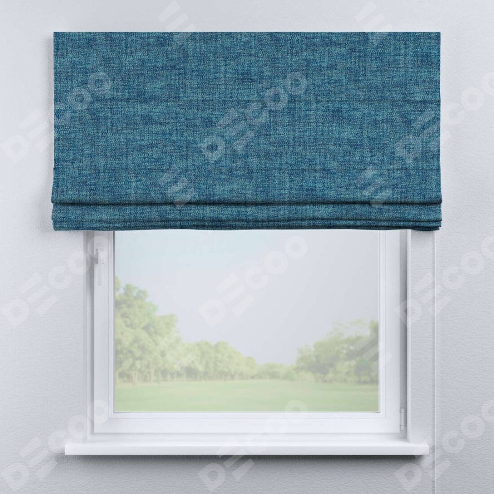 Классическая римская штора производителя «Cortin», пошита из ткани рогожка димаут лазурно-синий, артикул: 91024. Имеет универсальный механизм и подходит для монтажа: на потолок, на стену и в нишу.