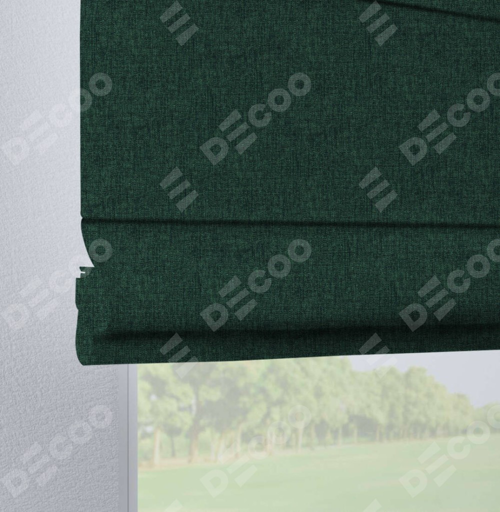 Римская штора «Кортин», рогожка димаут тёмно-зелёный, на петлях