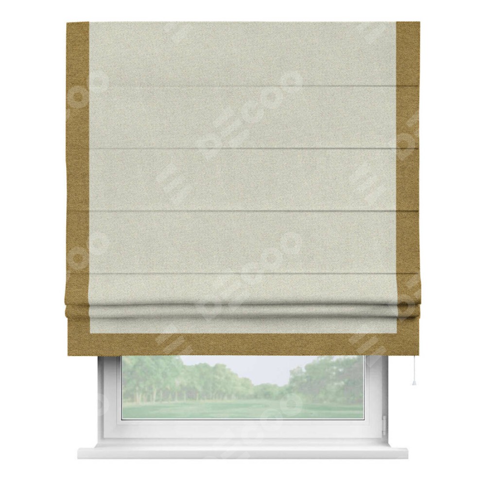 Римская штора с отделкой кантом «Виктория», пошита из ткани твид блэкаут шампань, артикул: 90929. представляет собой элегантное решение для оконного оформления. Кант по бокам и снизу шторы добавляет изысканности и аккуратности внешнему виду, подчеркивая линии и форму шторы. Этот элемент декора не только украшает, но и выполняет практическую функцию, защищая края ткани от износа. Кант может быть выполнен в контрастном или гармонирующем цвете, что позволяет добиться различных стилевых эффектов и легко вписать штору в интерьер комнаты.