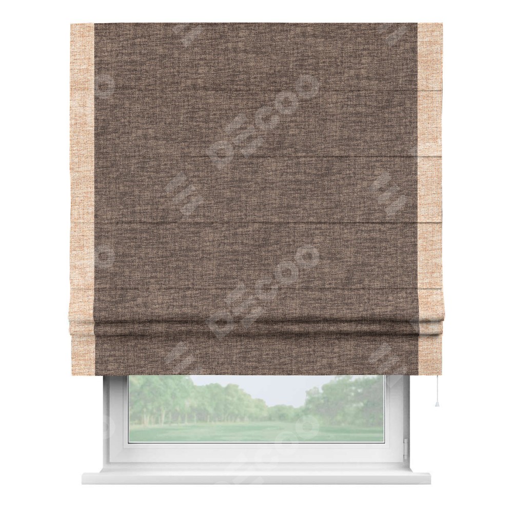 Римская штора «Кортин» для проёма, рогожка димаут коричневый, с кантом Стрим Дуо