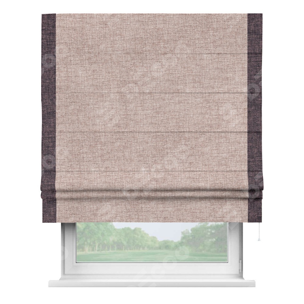 Римская штора «Кортин» для проёма, рогожка димаут пыльный розовый, с кантом Стрим Дуо