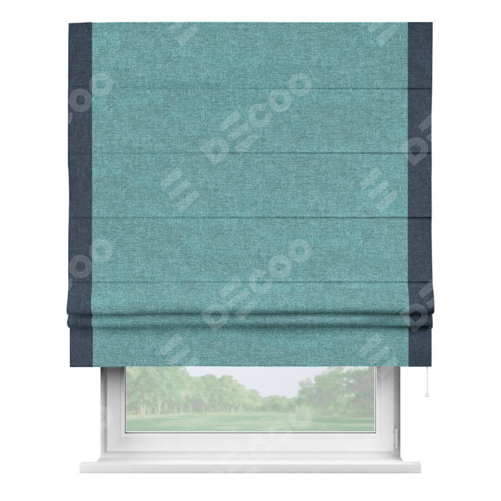 Римская штора «Кортин» с кантом Стрим Дуо, для проема, ткань лён кашемир бирюзовый