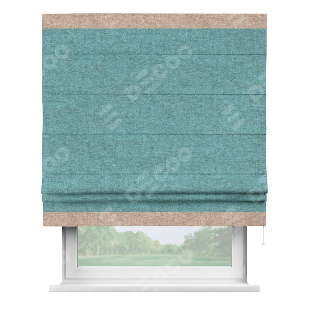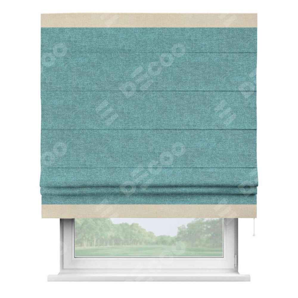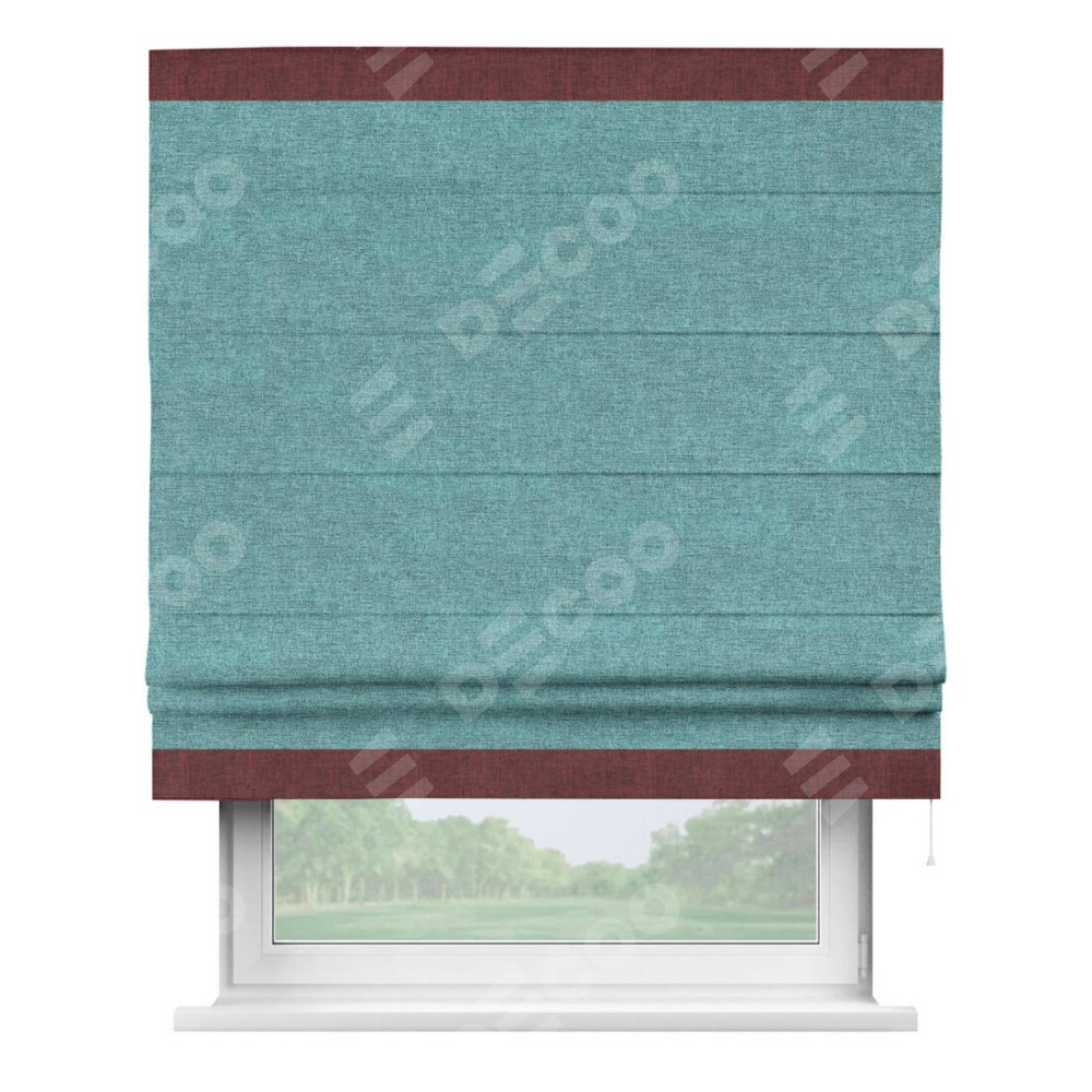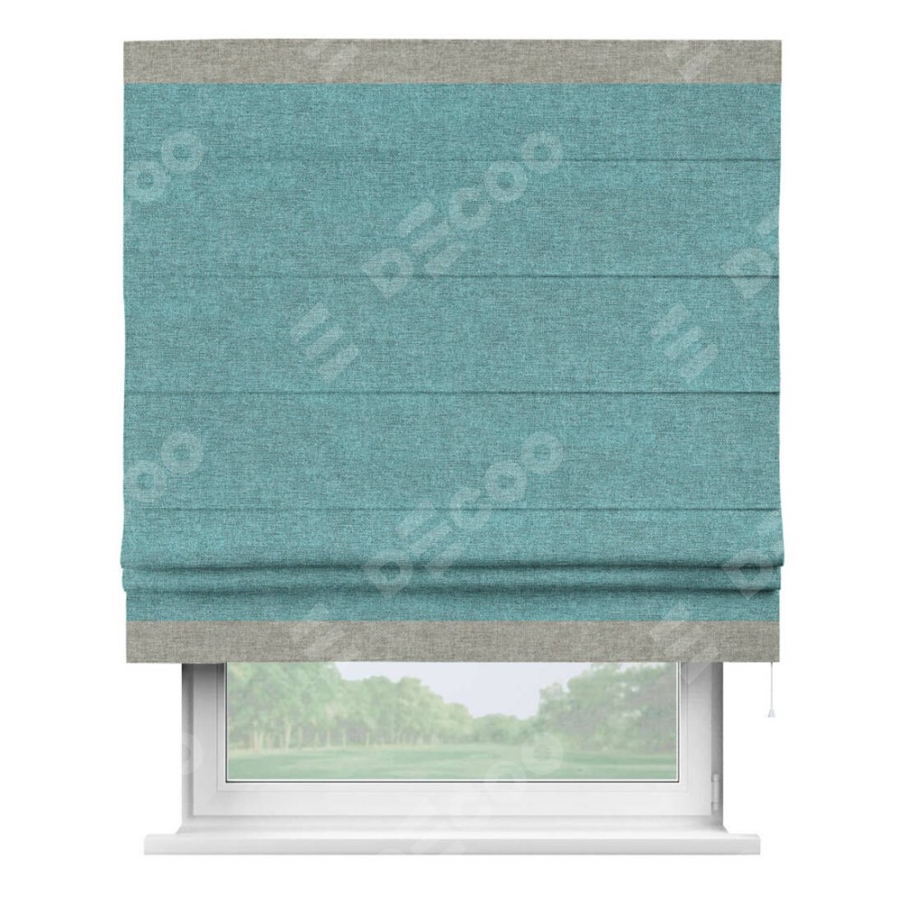 Римская штора «Кортин» с кантом Горизонт, для проема, ткань лён кашемир бирюзовый