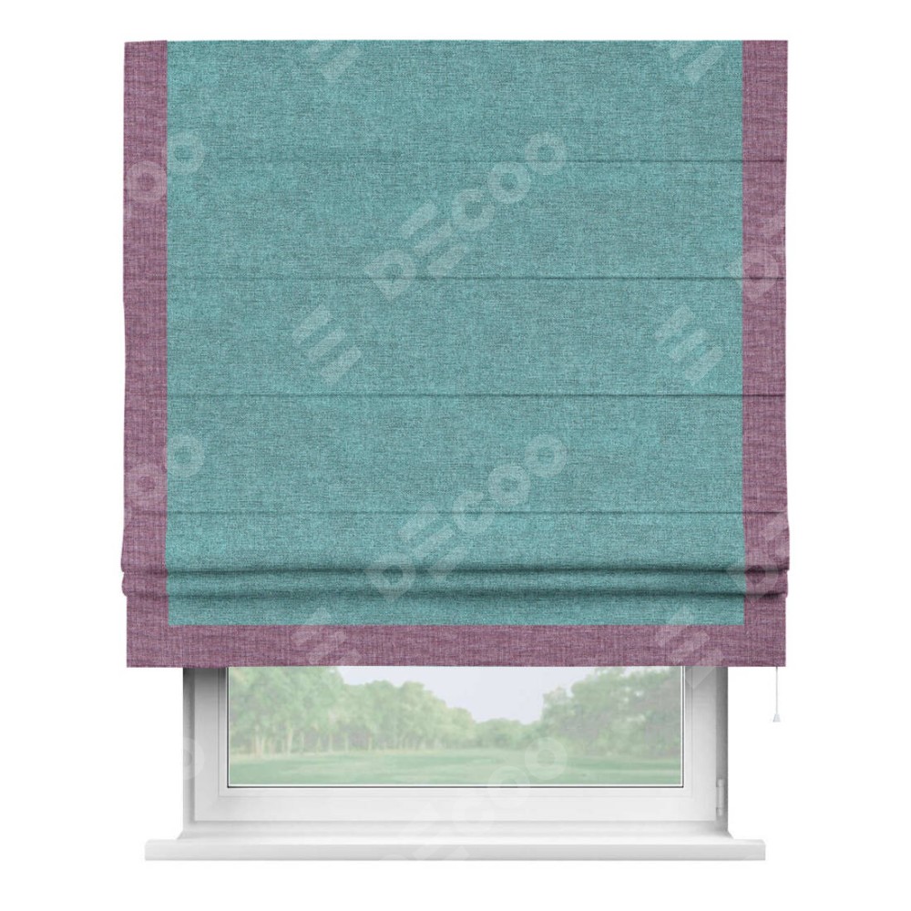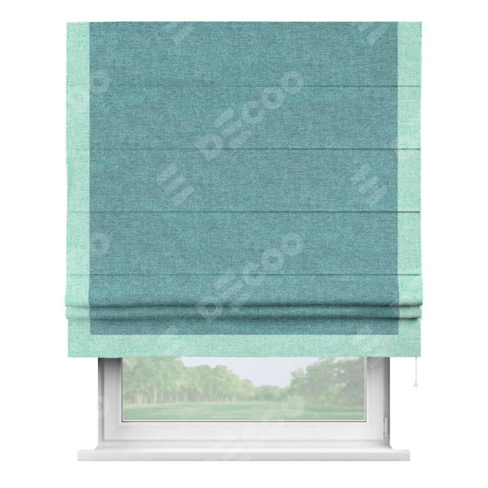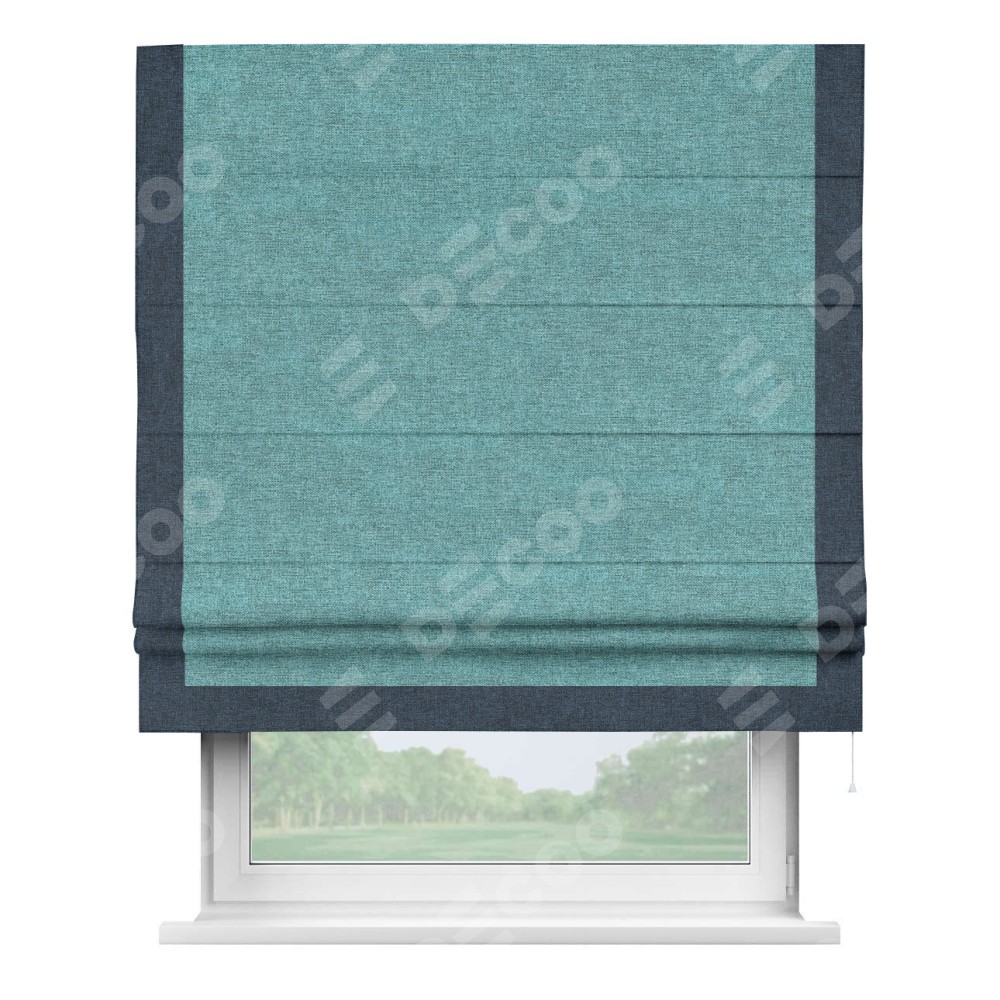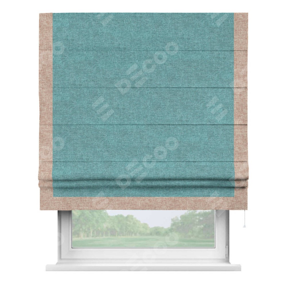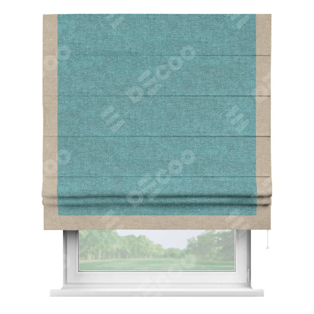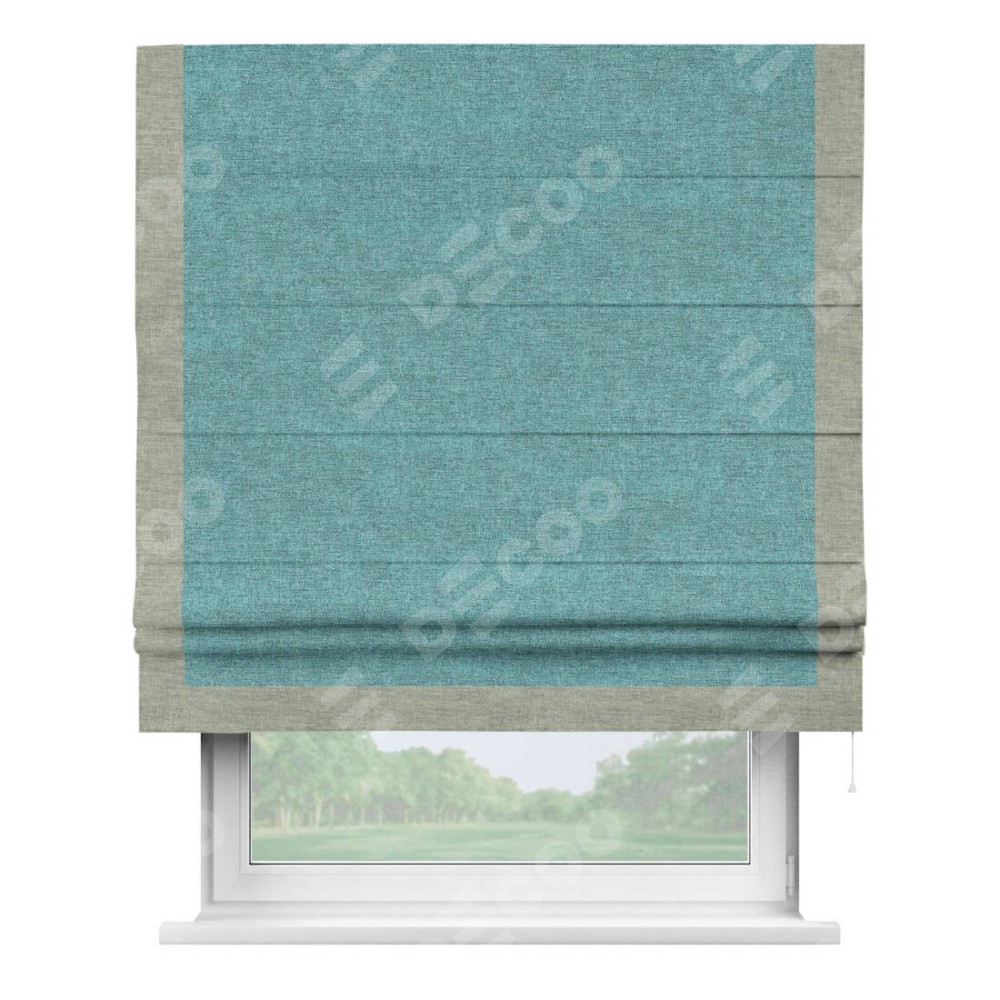 Римская штора «Кортин» с кантом Виктория, для проема, ткань лён кашемир бирюзовый