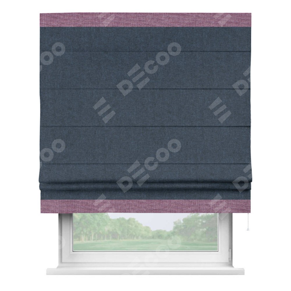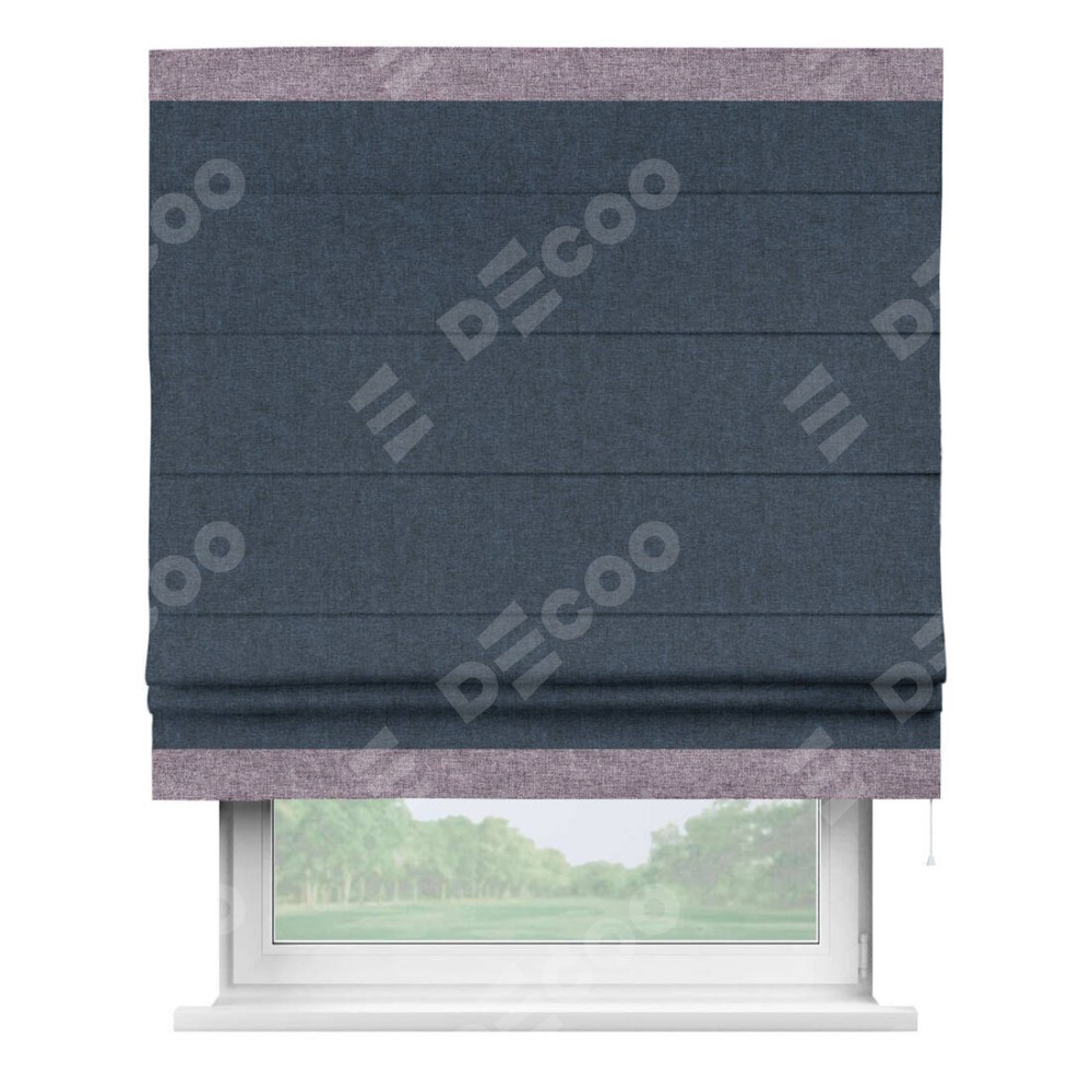 Римская штора «Кортин» для проёма, лён кашемир синий, с кантом Горизонт