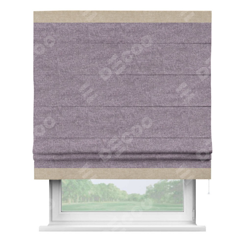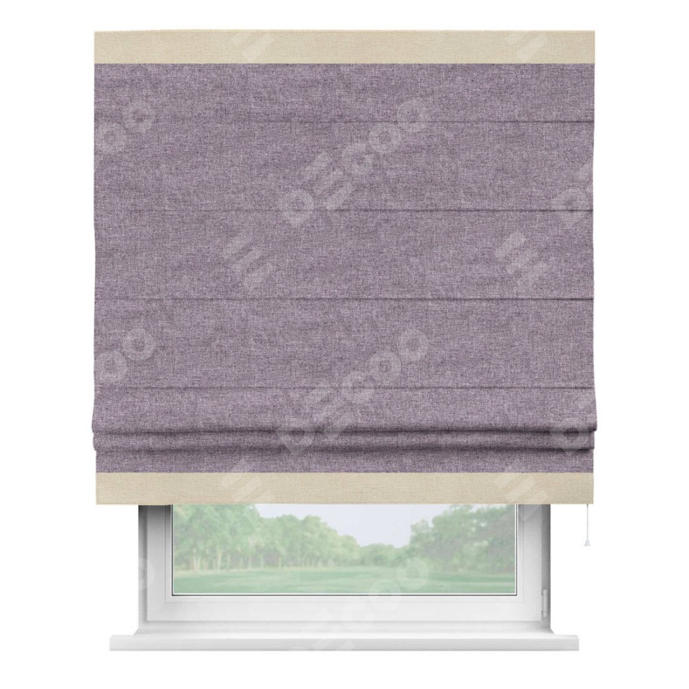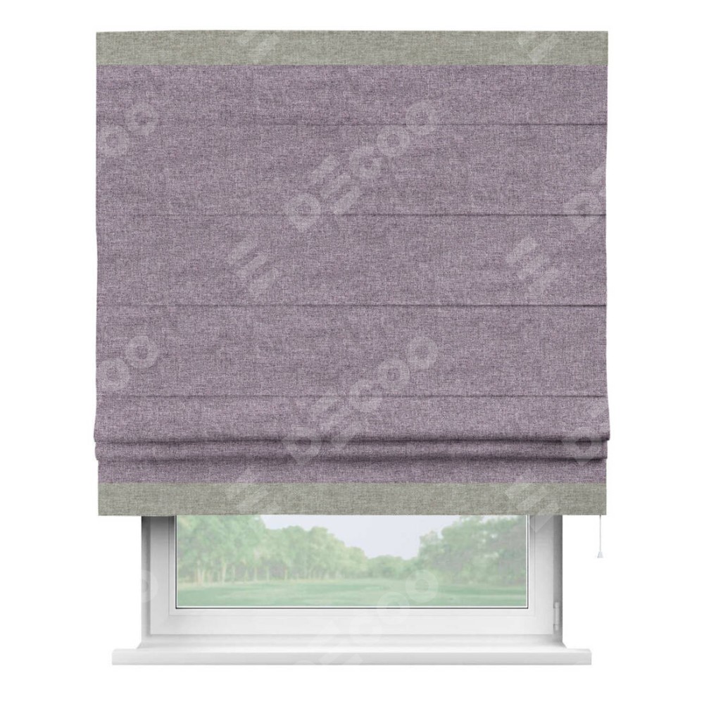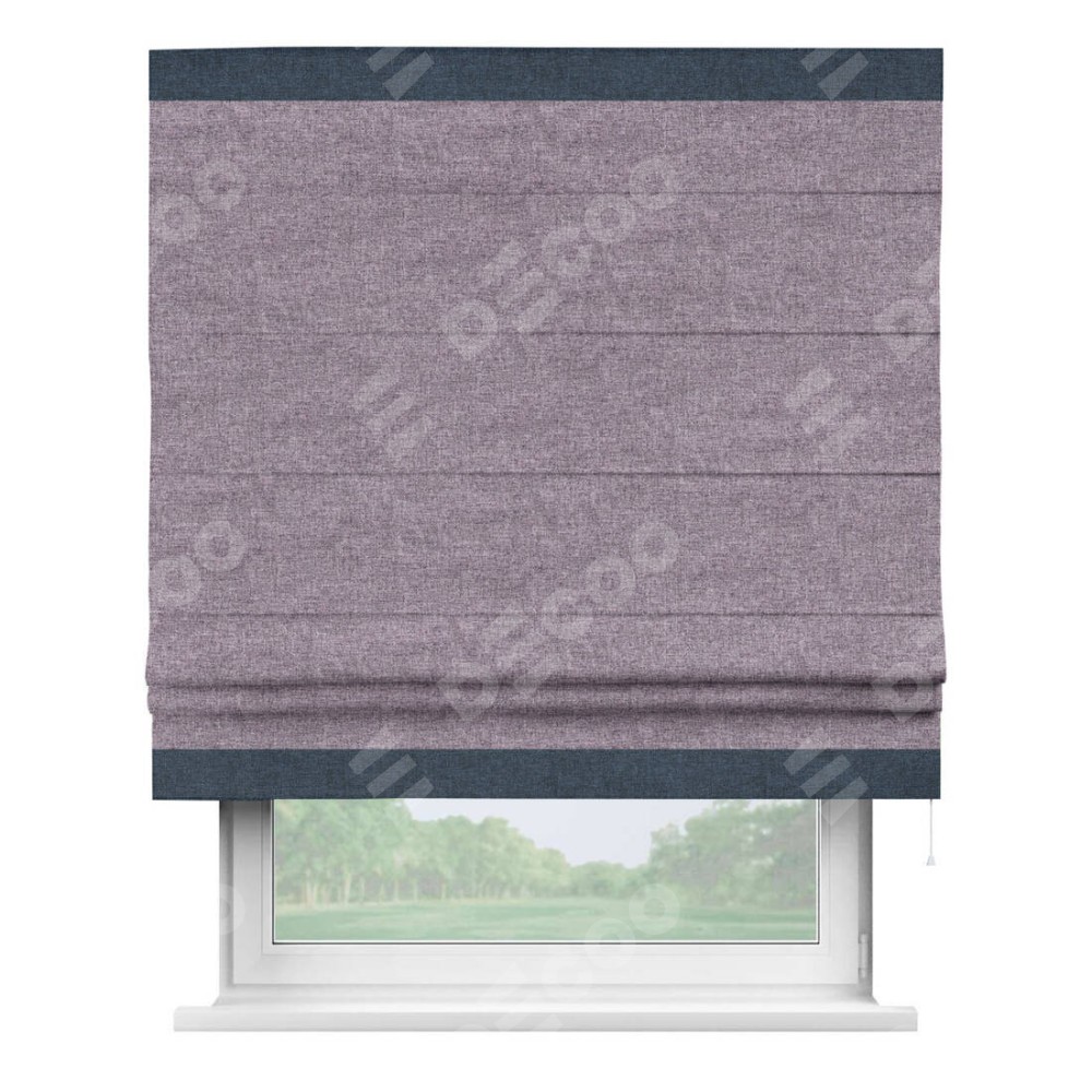 Римская штора «Кортин» для проёма, лён кашемир фиолетовый, с кантом Горизонт