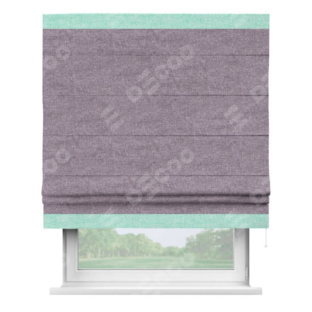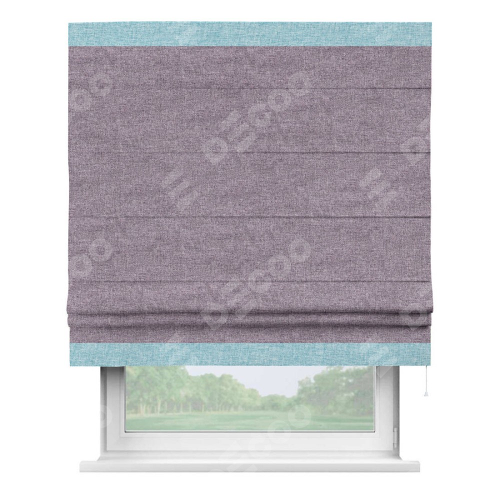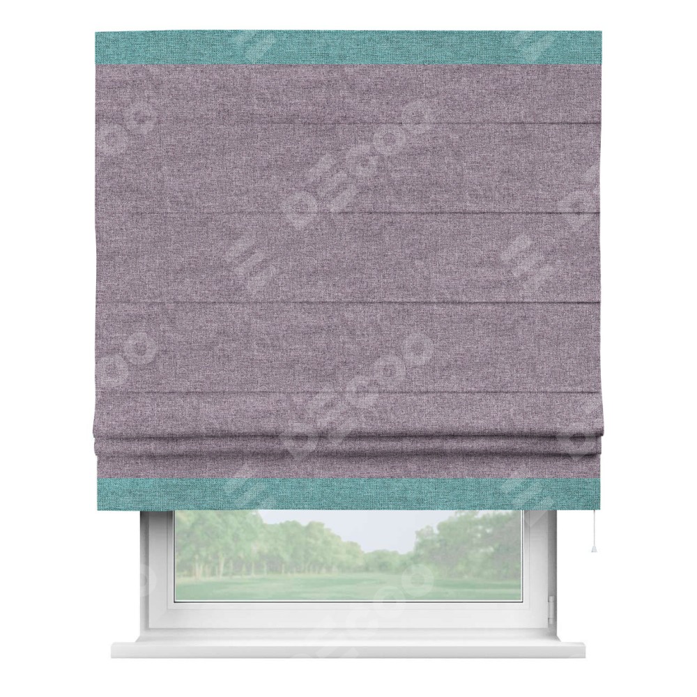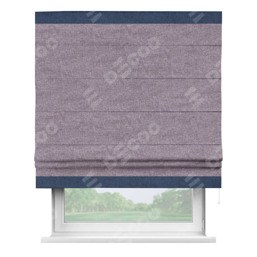 Римская штора «Кортин» для проёма, лён кашемир фиолетовый, с кантом Горизонт