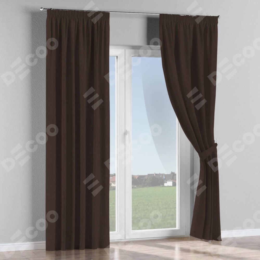 Комплект штор лён димаут венге, на тесьме «Карандаш»