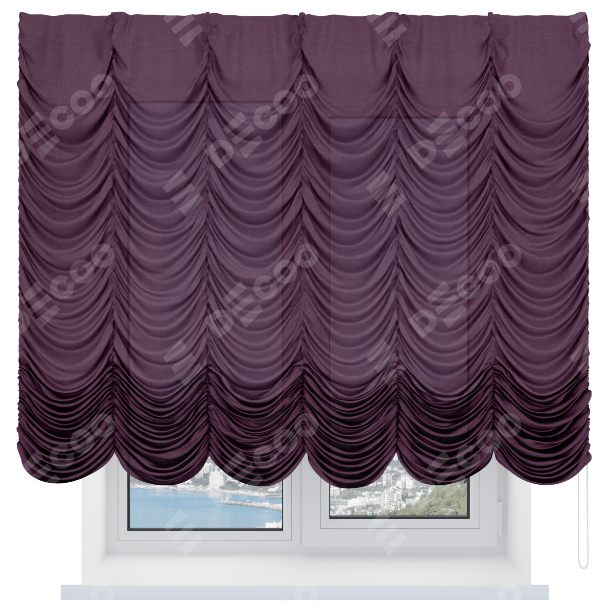 Французская штора производителя «Cortin», используется для проёма, пошита из ткани лён фиолетовый, артикул ткани 85907. Имеет универсальный механизм и подходит для монтажа: на потолок и на стену.