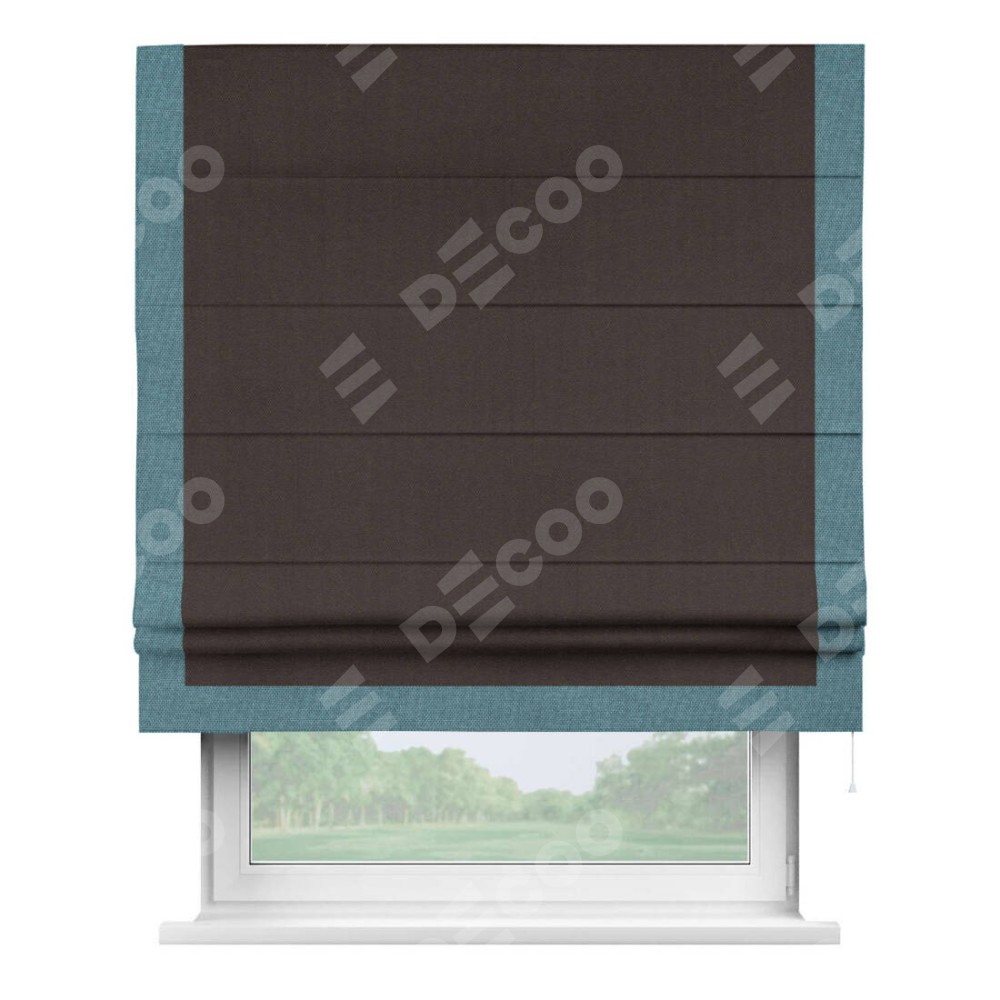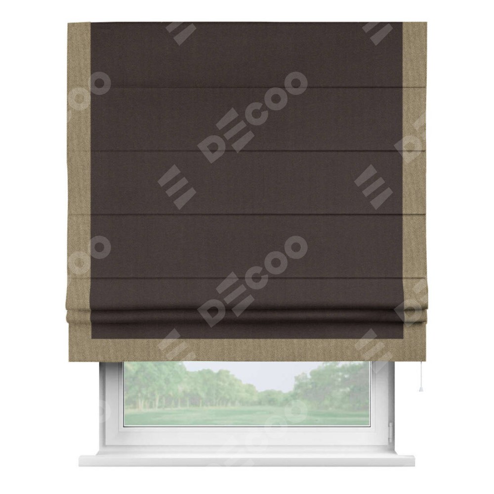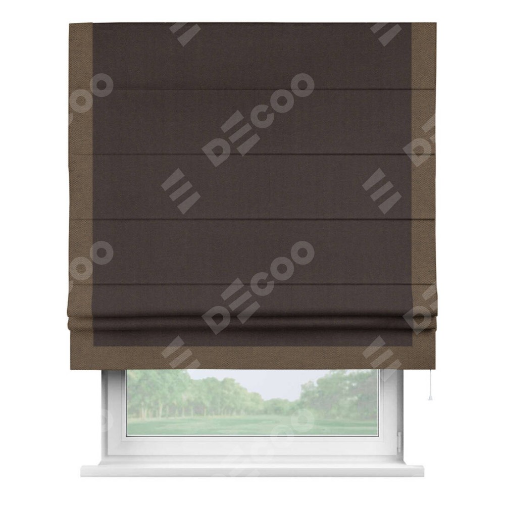 Римская штора «Кортин» для проема, лён димаут венге с кантом Виктория
