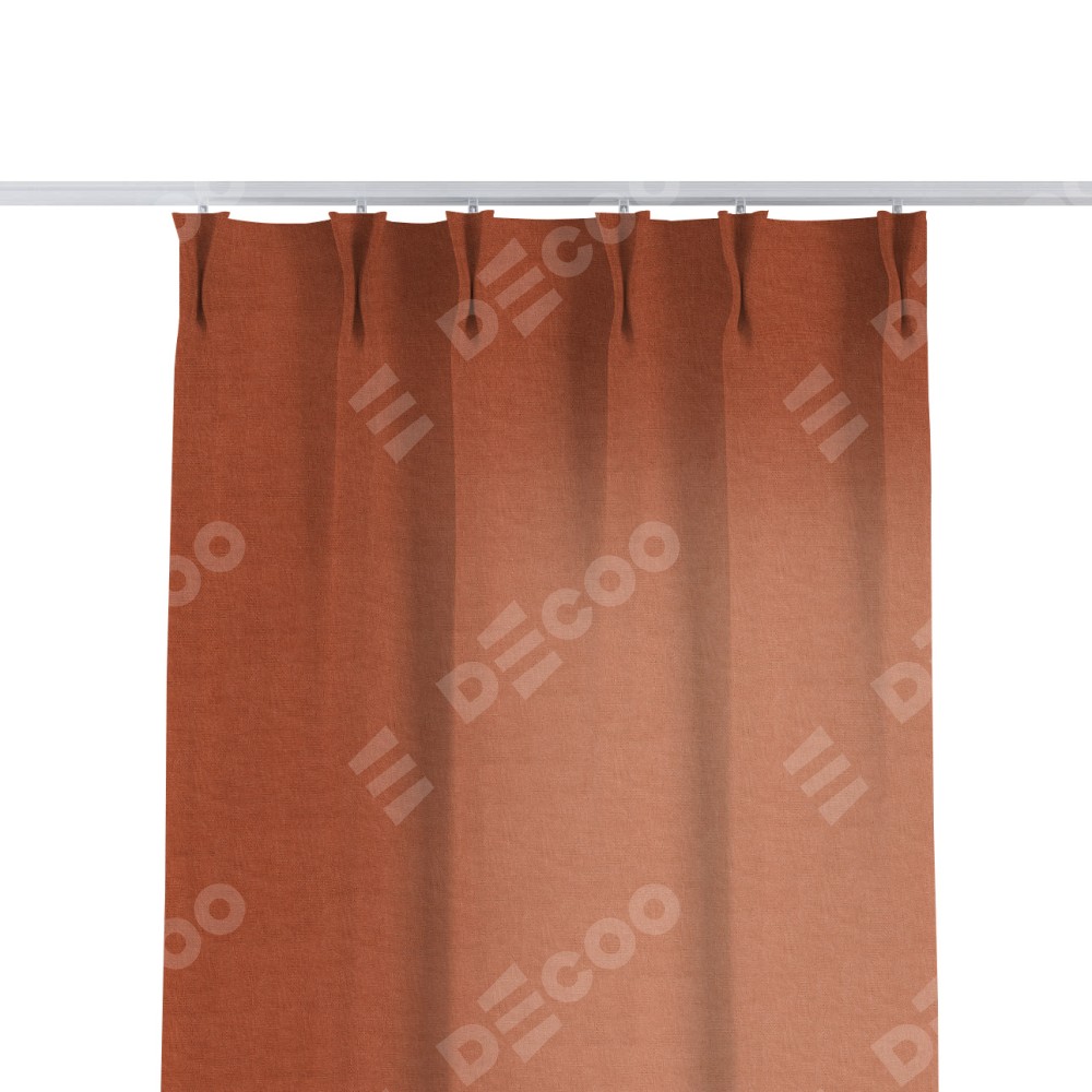 Комплект прямых штор, от производителя «Cortin», пошиты из ткани канвас терракотовый, артикул ткани v-107. С изнаночной стороны в верхней части штор пристрачивается шторная лента с декоративными складками «Кустик». Для создания элегантных складок рекомендуемый коэффициент 1:2 (на 100 см. ширины проёма 200 см. ширины ткани). Важно! Ширина штор указана без учёта коэффициента сборки!