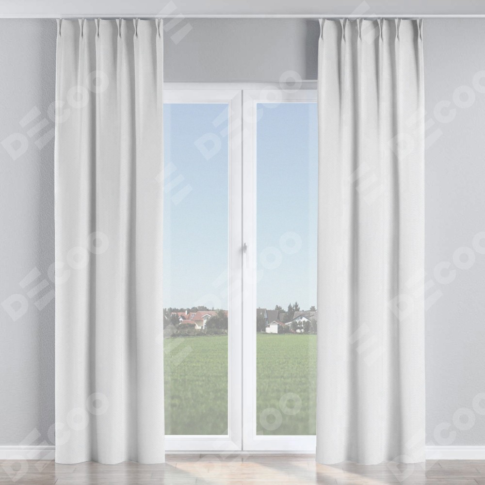 Комплект прямых штор, от производителя «Cortin», пошиты из ткани лён димаут белый, артикул ткани 28. С изнаночной стороны в верхней части штор пристрачивается шторная лента с декоративными складками «Кустик». Для создания элегантных складок рекомендуемый коэффициент 1:2 (на 100 см. ширины проёма 200 см. ширины ткани). Важно! Ширина штор указана без учёта коэффициента сборки!